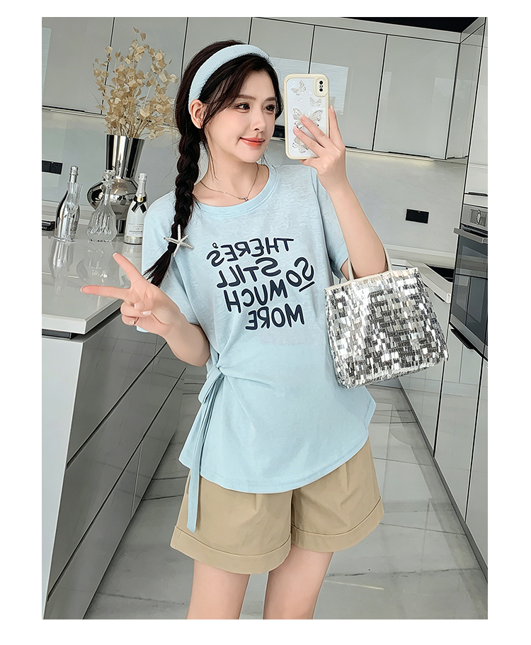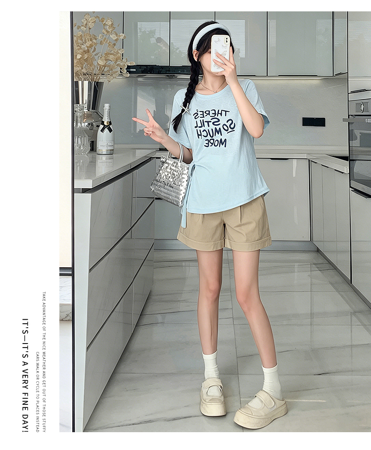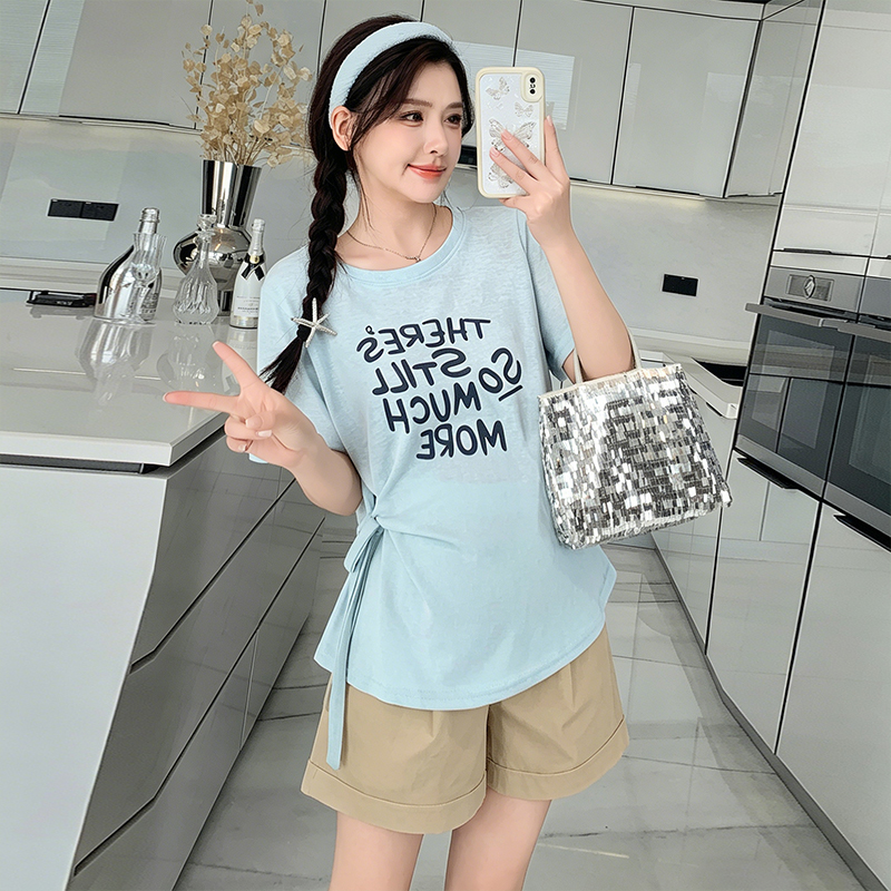 실사 임산부 여름 드레스 새로운 슬림해 보이는 캐주얼 외출용 스포츠 슈트 루즈핏 빅 사이즈 반바지 세트