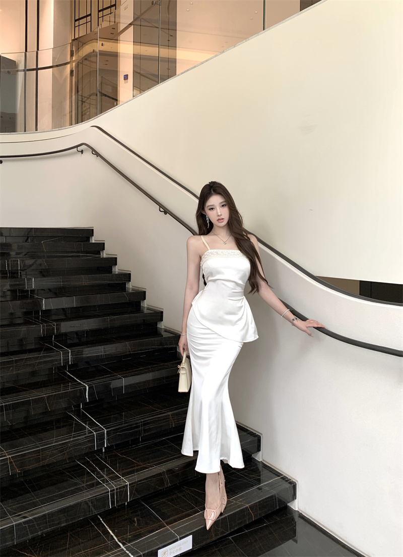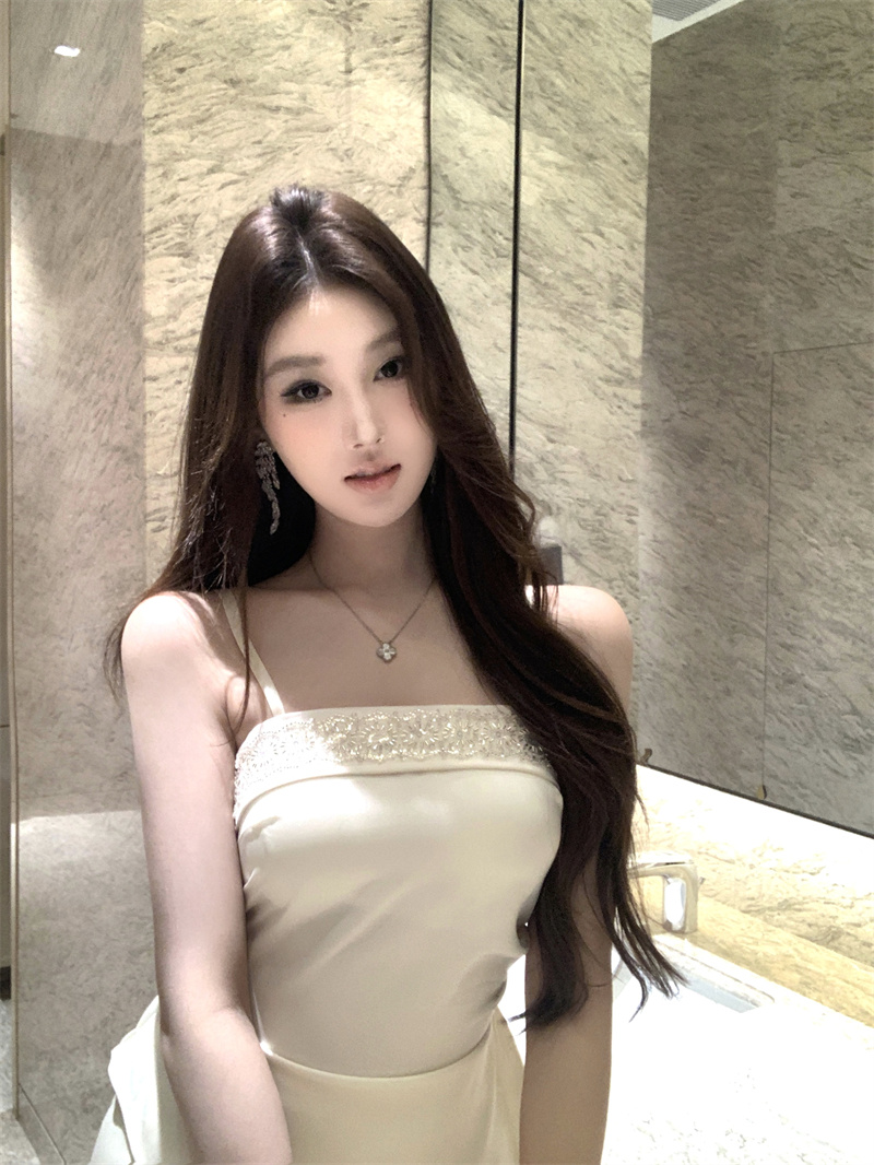 실사 핫걸 무거운 작업 명문 여성 고급 몸매 가꾸기 슬림해 보이는 순수한 욕망 섹시함 롱 코트 행침 보 드레스