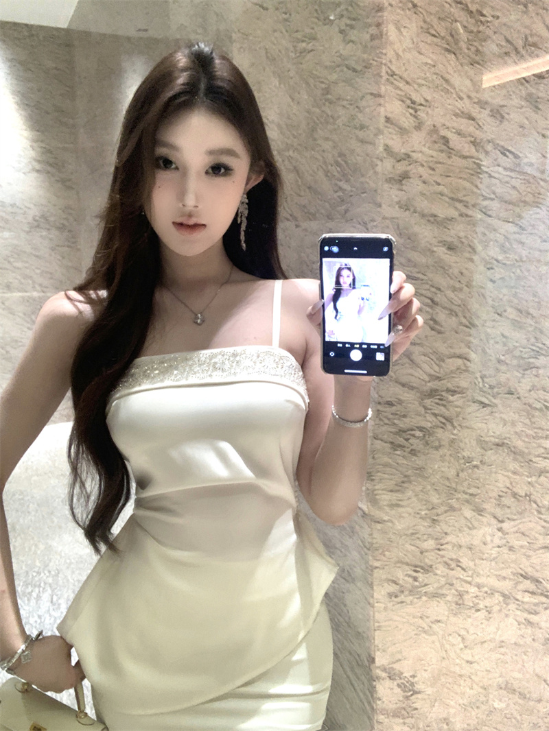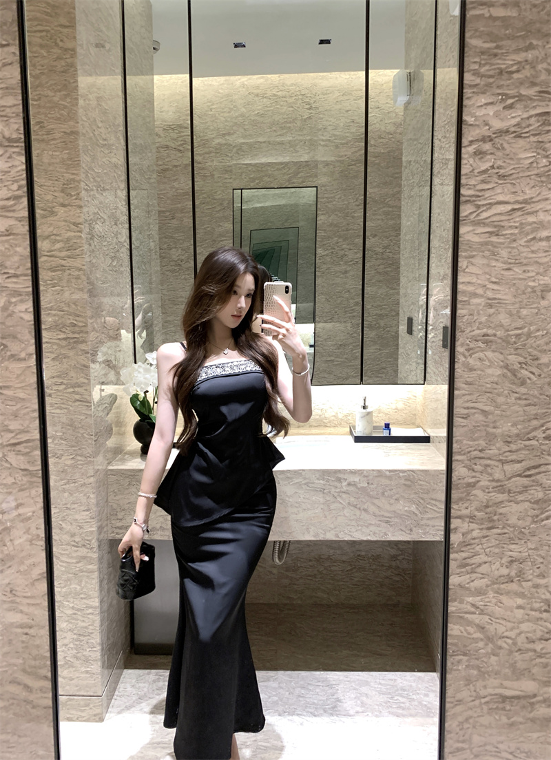 실사 검정색 핫걸 여성 드레스 여름 몸매 가꾸기 슬림해 보이는 망사 치마 고급 센스 감정 치마