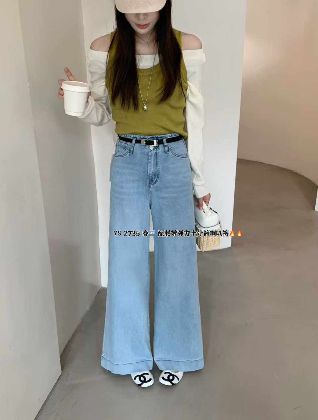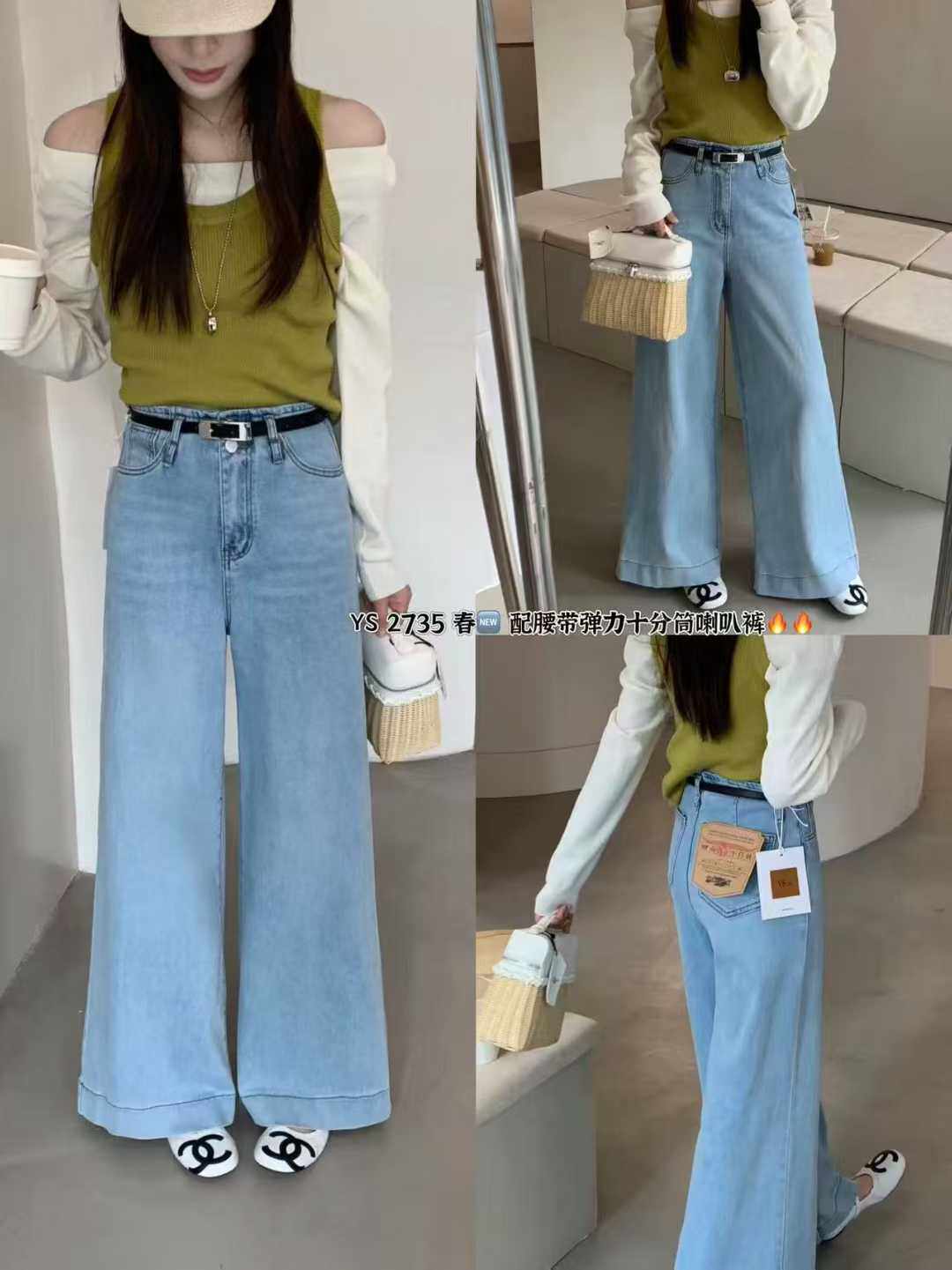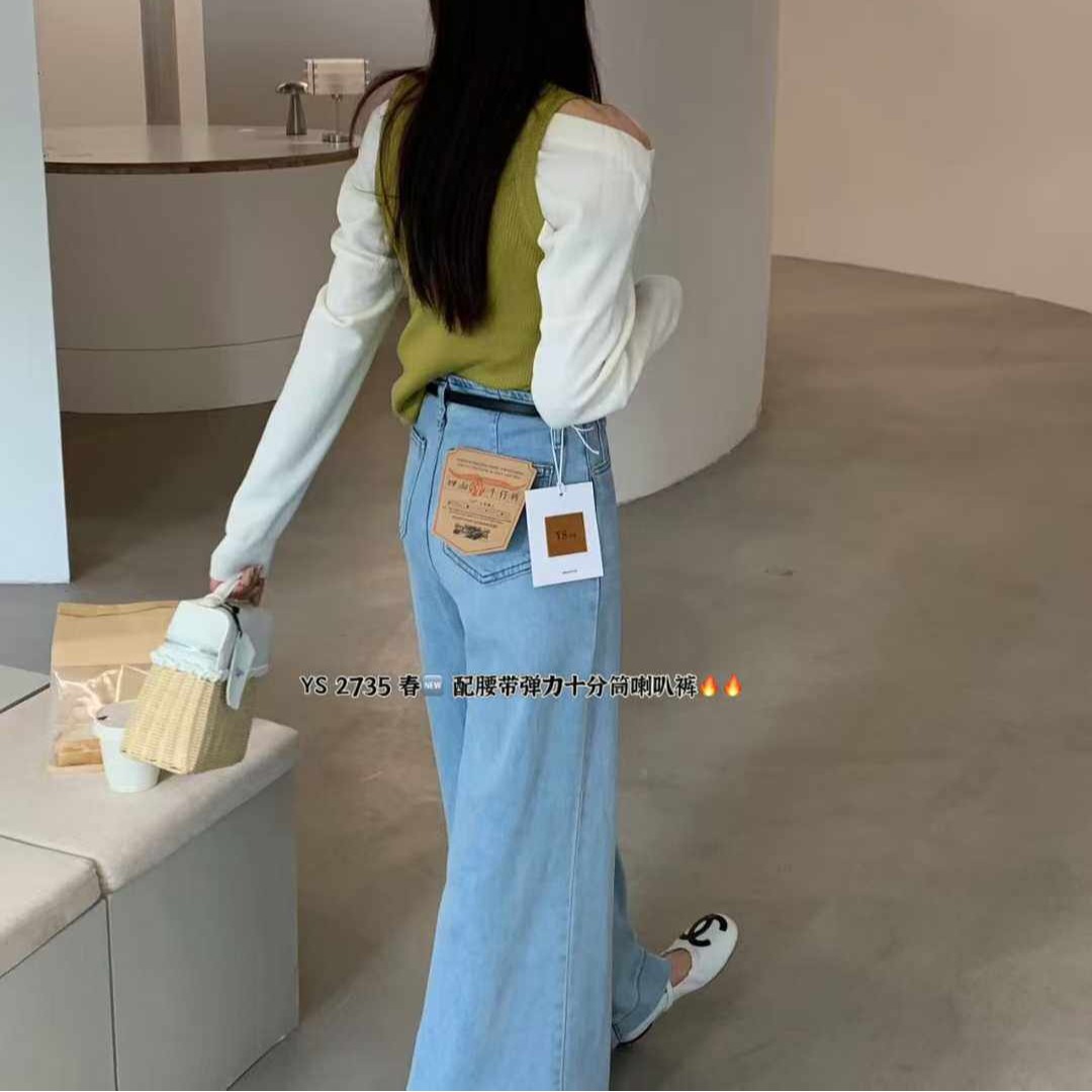 한 표준 원 나팔 바지 2026 봄 새로운 하이웨이스트 슬림해 보이는 신축성 나팔 청바지 여성 루즈핏 2735