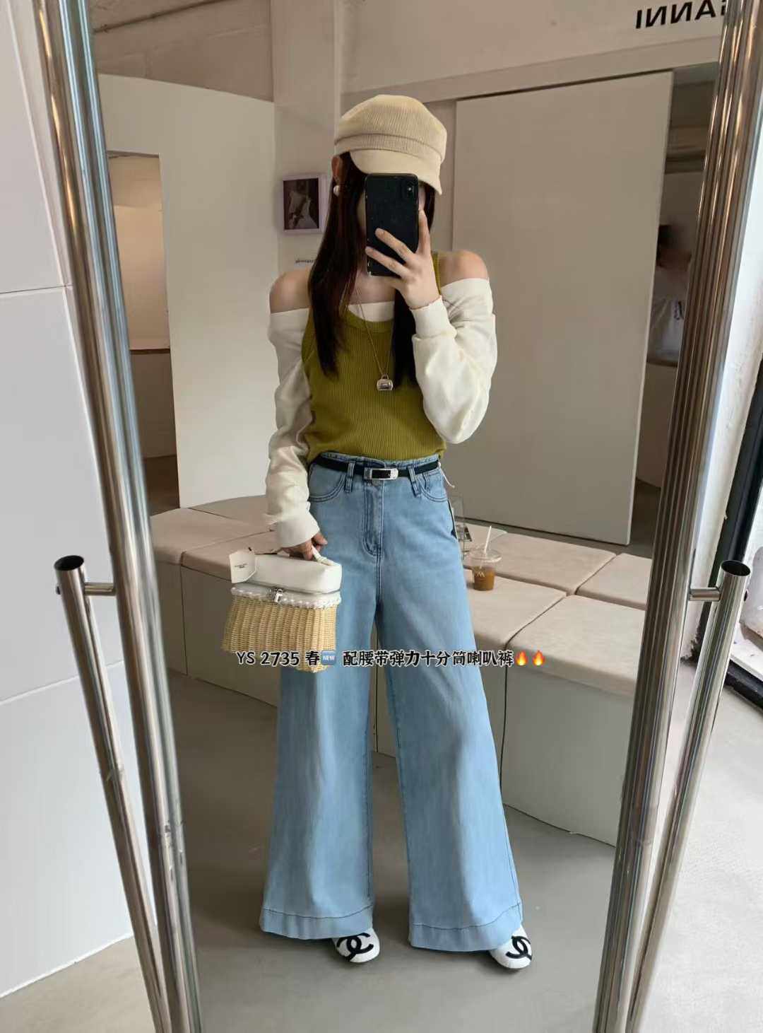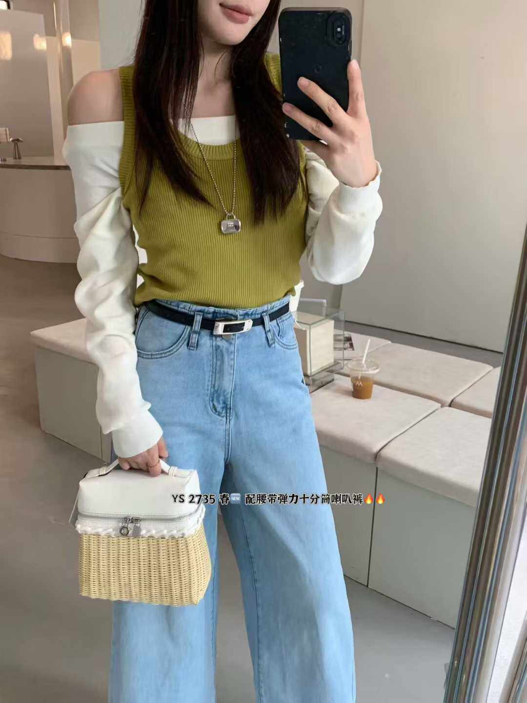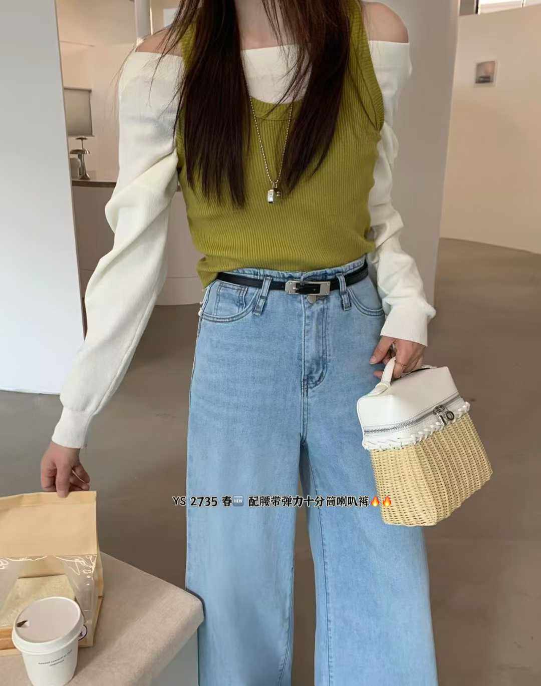 한 표준 원 나팔 바지 2026 봄 새로운 하이웨이스트 슬림해 보이는 신축성 나팔 청바지 여성 루즈핏 2735