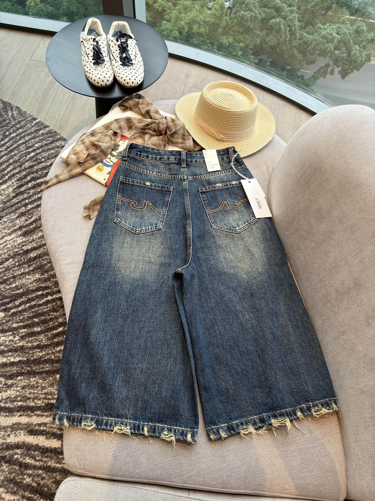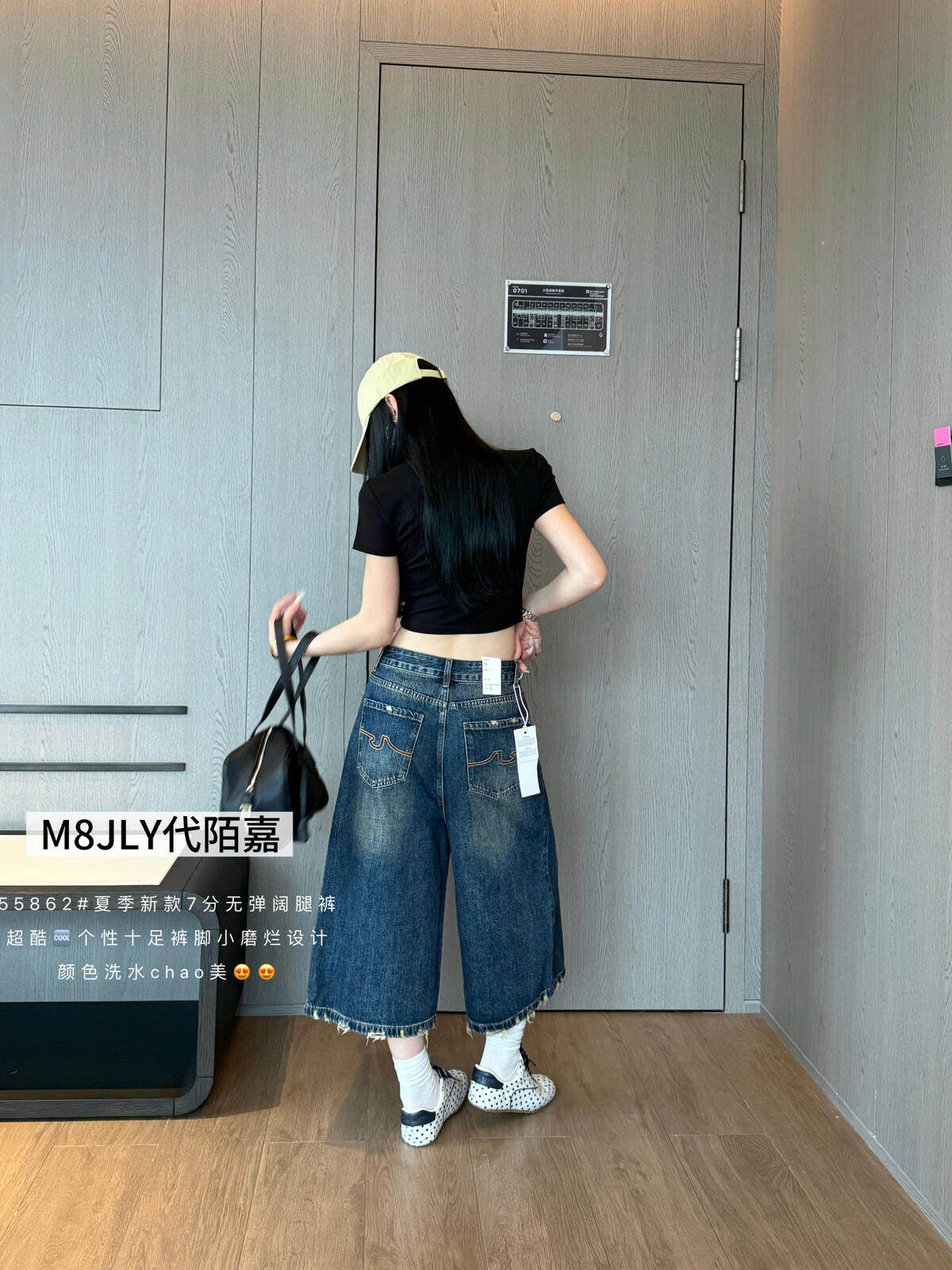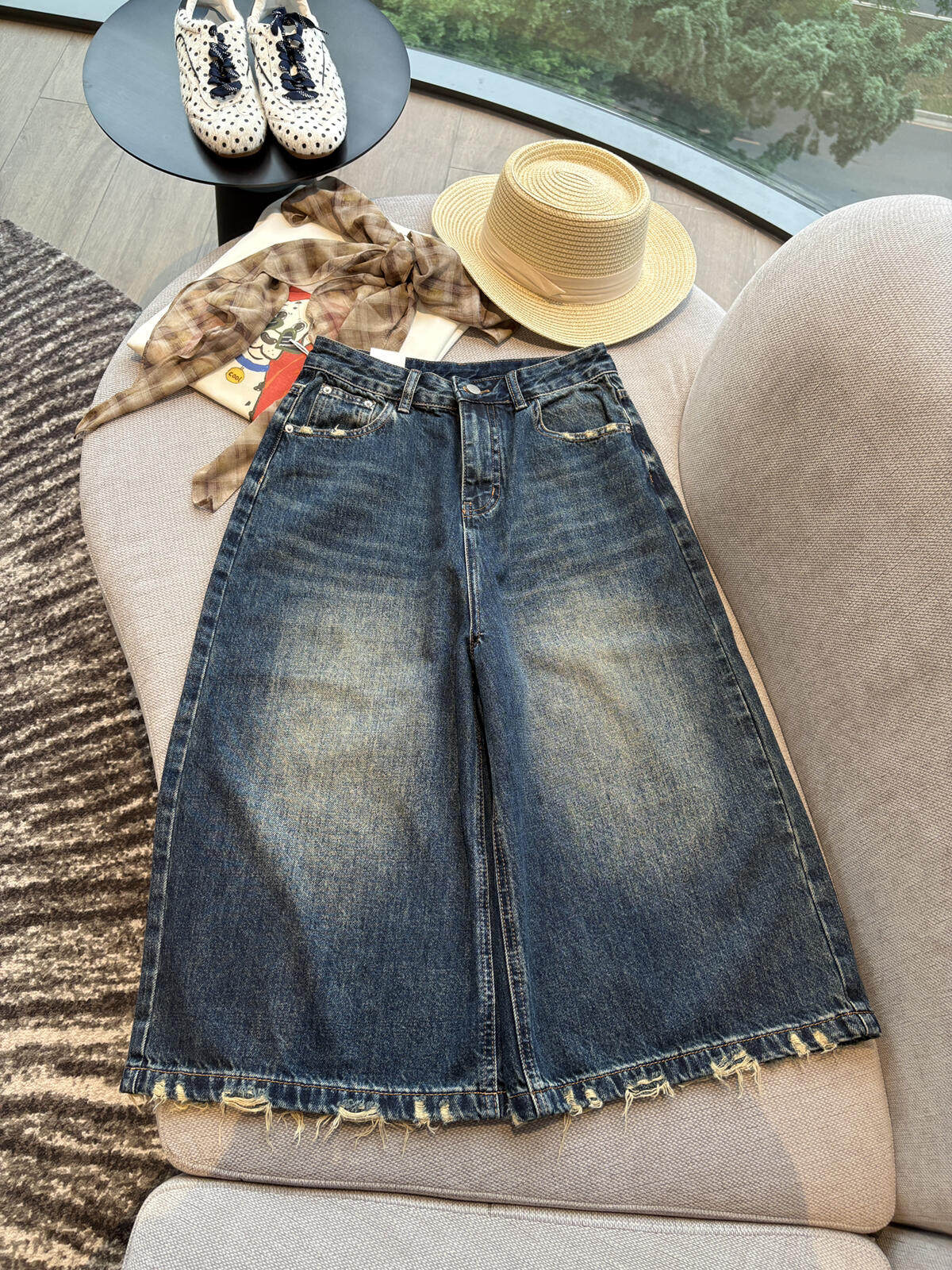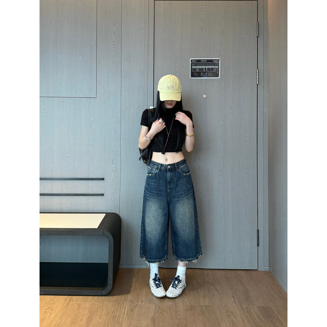 레트로 스타일 하이웨이스트 슬림해 보이는 데님 반바지 여성 26 봄 여름 새로운 찢어진 부분 오부 바지 작은 키 바지 트렌디 601