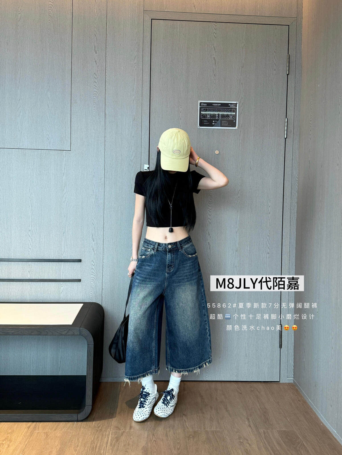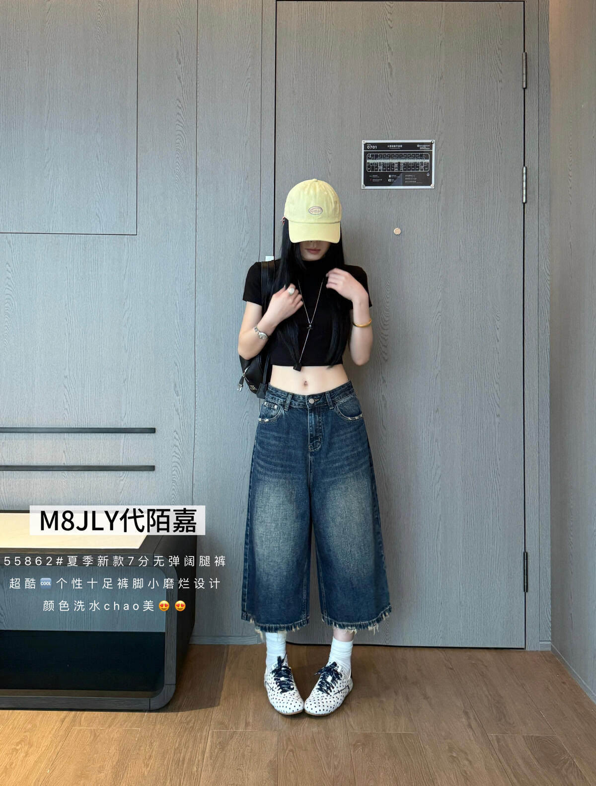jeans 73261 여름 2026 새로운 하이웨이스트 루즈핏 캐주얼 다용도 순면 넓은 다리 애드벌룬 9부 바지 여성 b