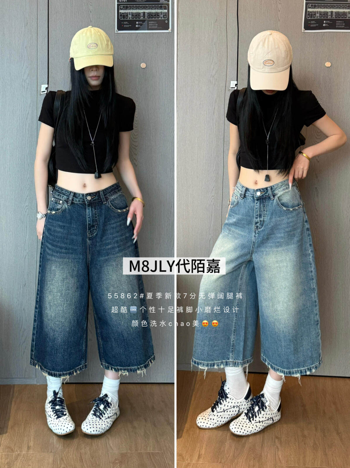 m8 데님 색상 바지 갈기 디자인 센스 루즈핏 대 에디션 와 성별 없음 폭탄 7 분 와이드 레그 팬츠 청바지 55862