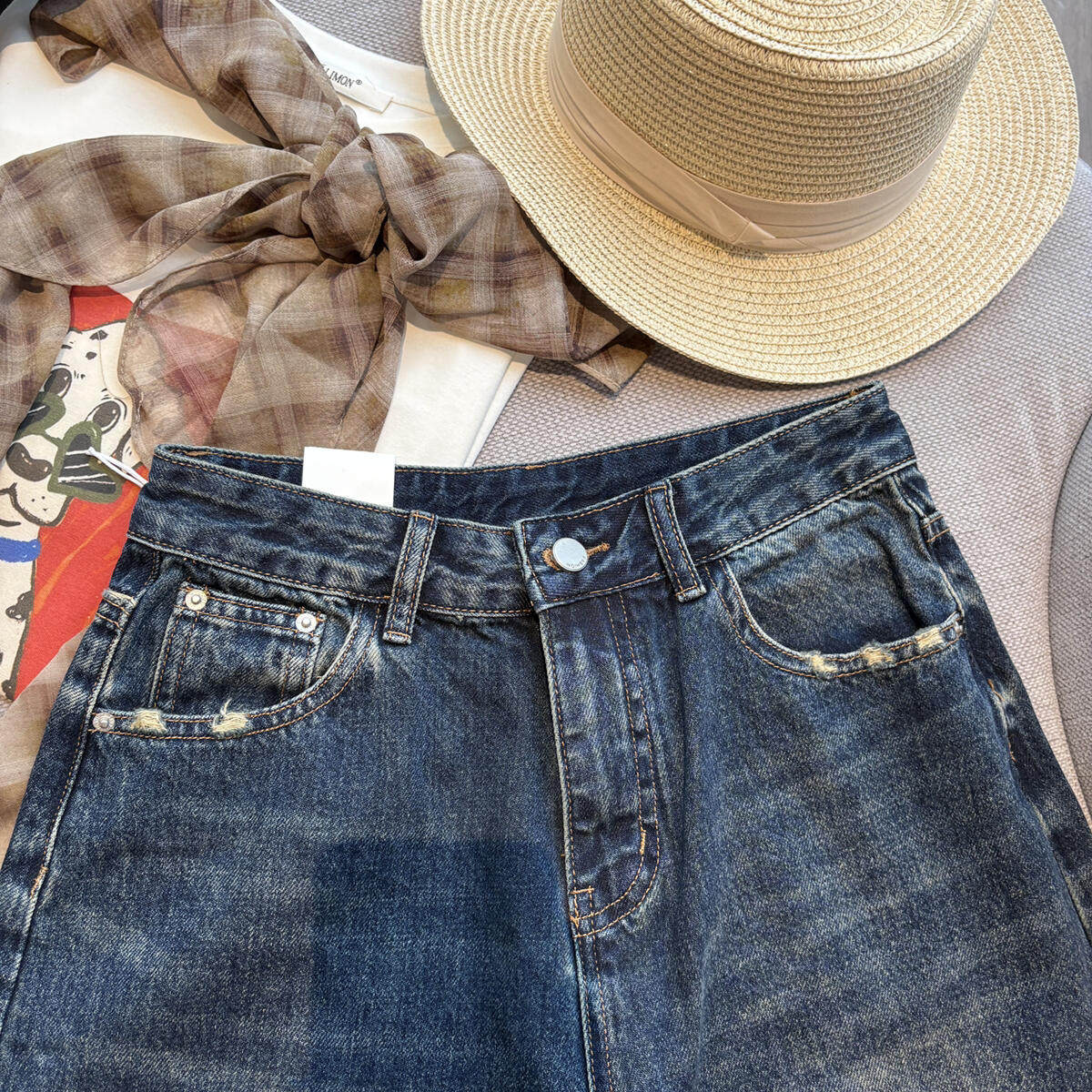 dm8718 여름 벨트 포함 하이웨이스트 데님 미니 스커트 2026 새로운 달콤한 차가운 핫걸 바람 다용도 슬림해 보이는 한 마디 미니 스커트