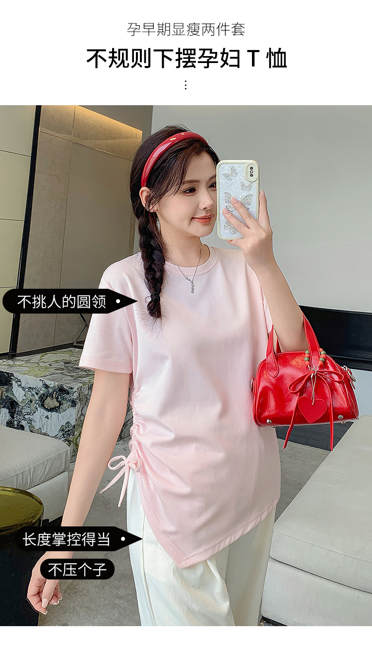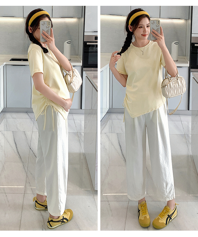 실사 임산부 여름 드레스 새로운 슬림해 보이는 캐주얼 외출용 패션 세트 루즈핏 빅 사이즈 9부 바지 세트