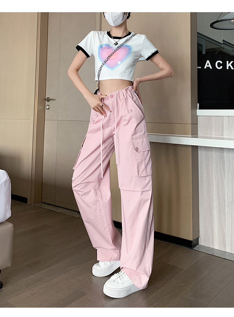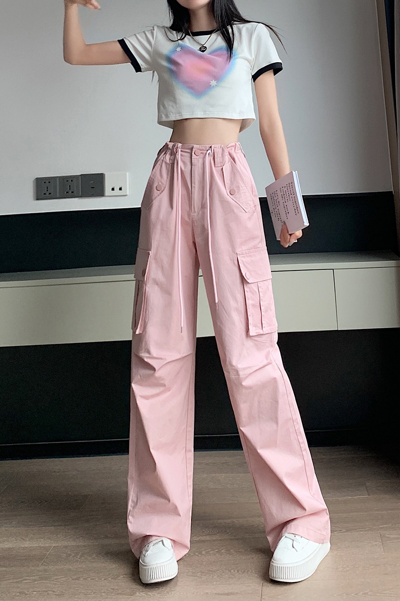 작은 키 아메리칸 달콤한 차가운 로우 웨이스트 면 100% 워크웨어 팬츠 26 봄 여름 스트레이트 와이드 레그 팬츠 바닥 청소 캐주얼 플러스 긴 바지 여성