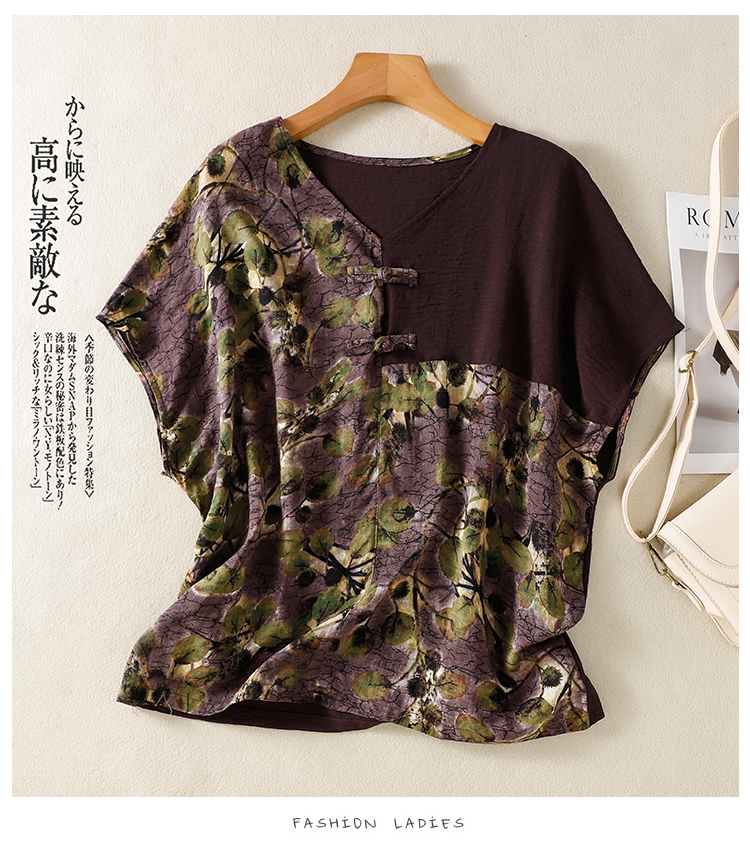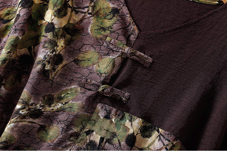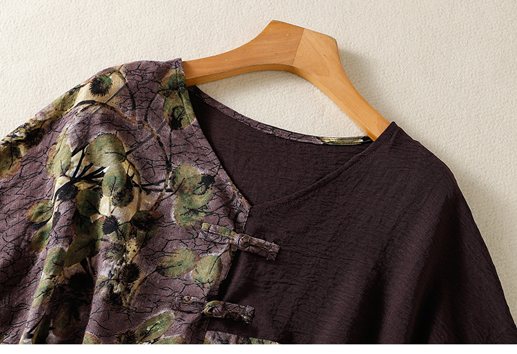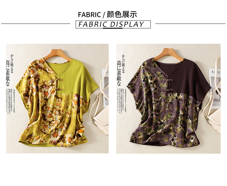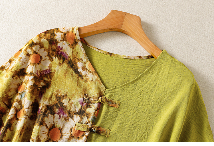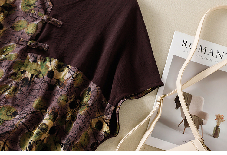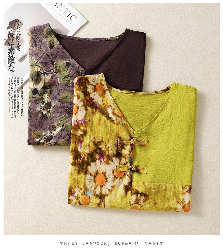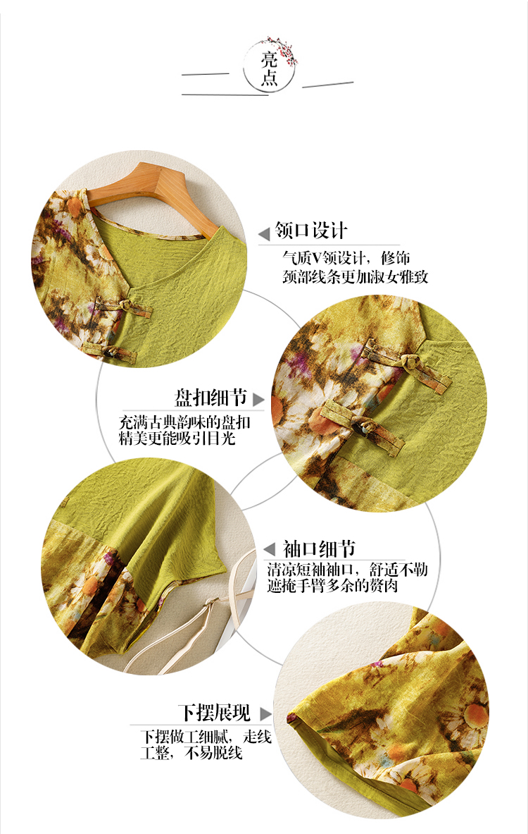 실사 2026 여름 드레스 새로운 어머니 드레스 문예 빅 사이즈 배색 패치워크 단추 V넥 반팔 티셔츠 셔츠 얇은 스타일