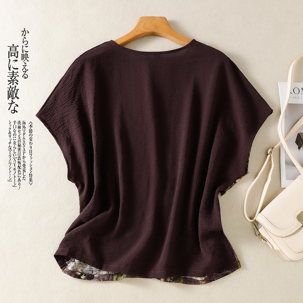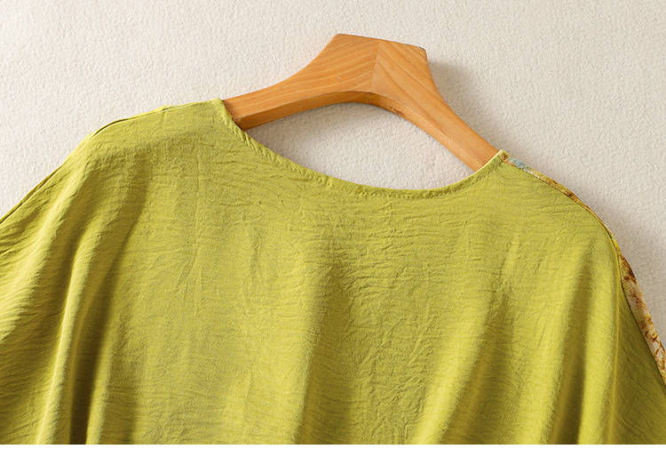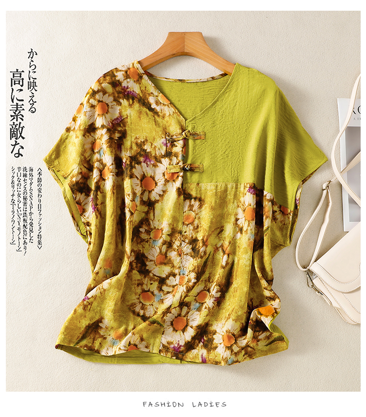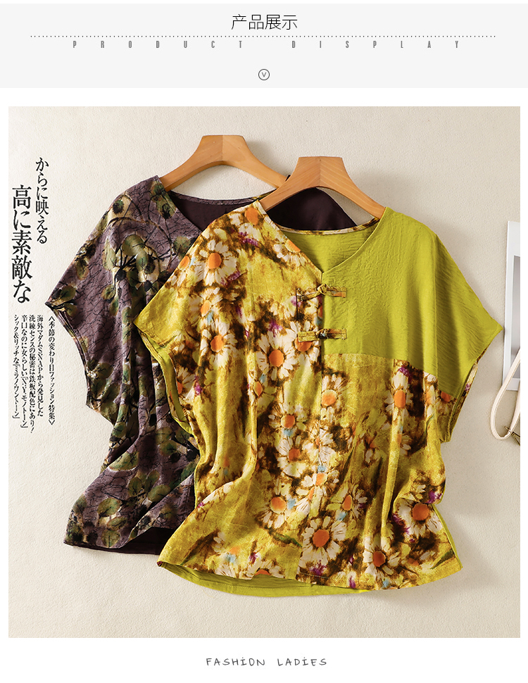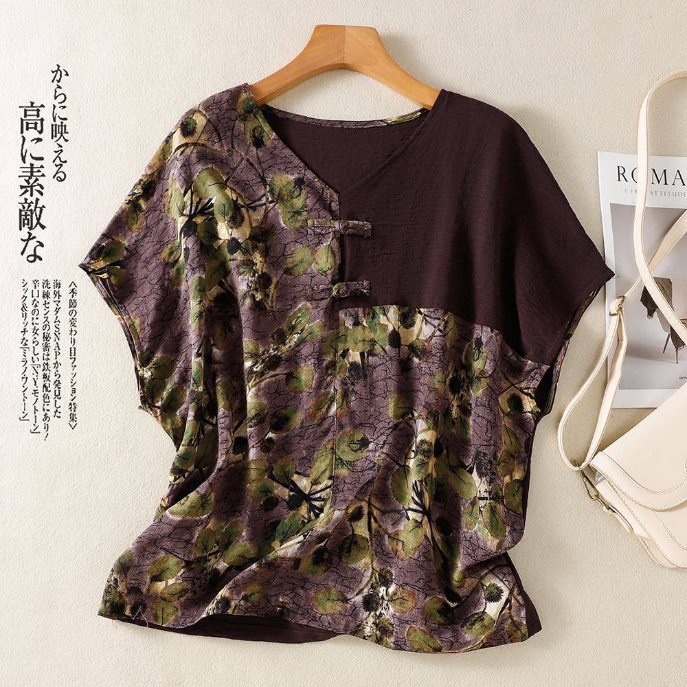 실사 2026 여름 드레스 새로운 어머니 드레스 문예 빅 사이즈 배색 패치워크 단추 V넥 반팔 티셔츠 셔츠 얇은 스타일