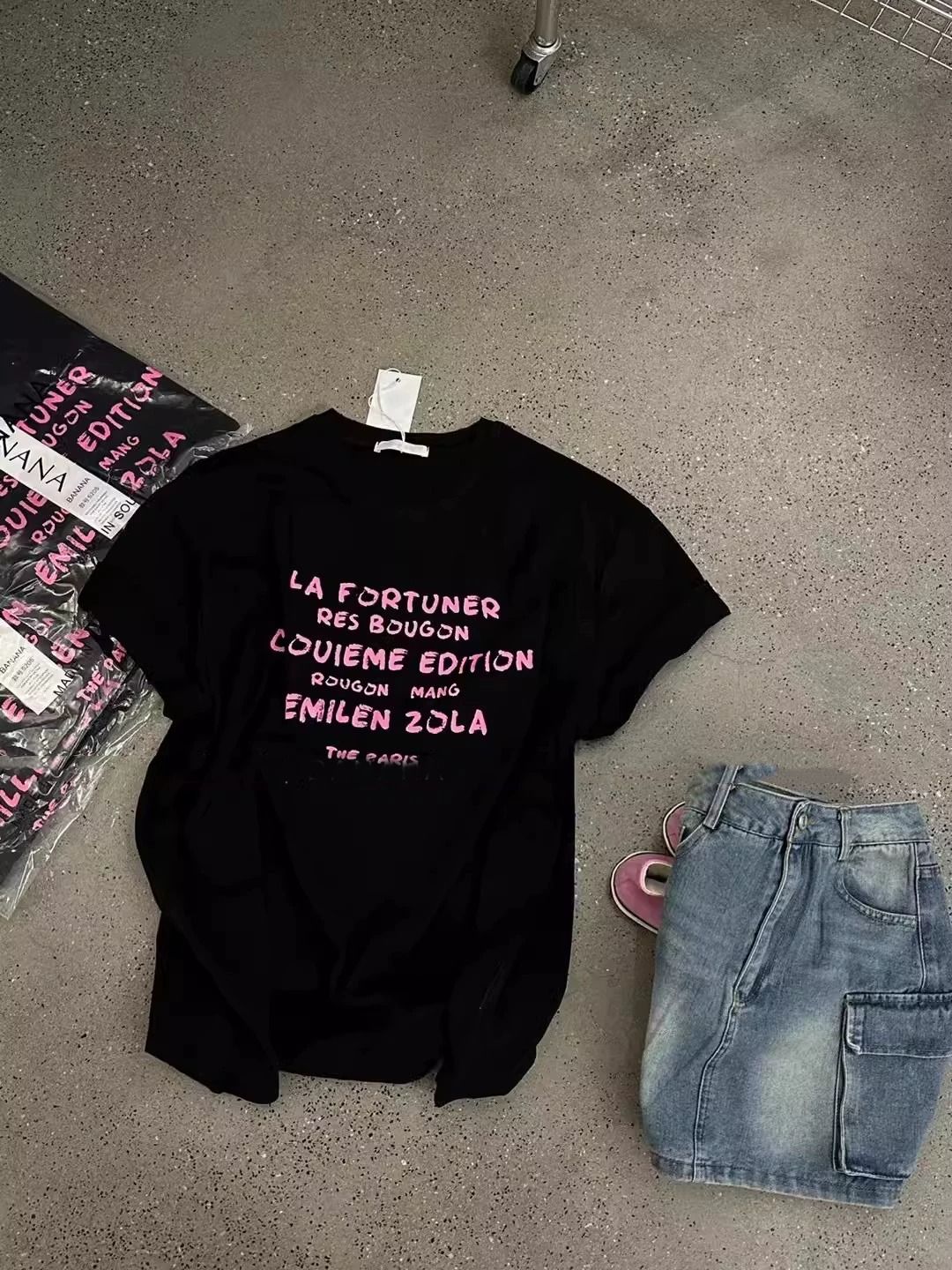 아메리칸 레트로 순면 프린트 반팔 티셔츠 여성