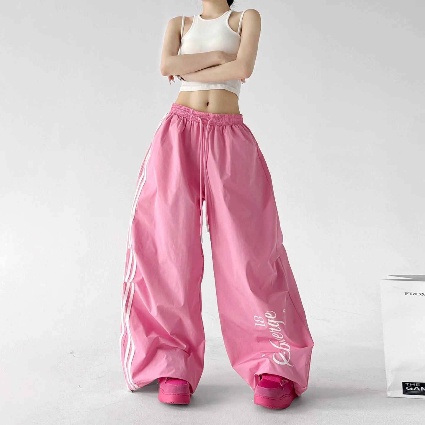 원본 품질 복합 도파민 스트라이프 캐주얼 바지 여성 아메리칸 레트로 주름 다용도 낙하산 병 워크웨어 바지