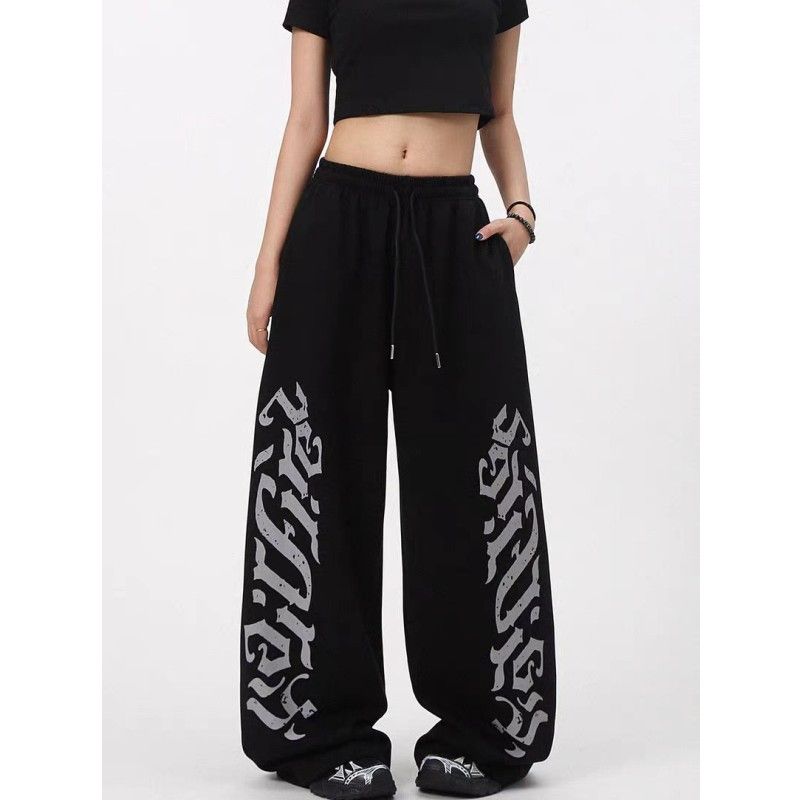 아메리칸 알파벳 프린트 모통이 칼 캐주얼 바지 여성 새로운 hipho 스트리트 댄스 와이드 레그 팬츠 루즈핏 웃음 하 알파벳 바지