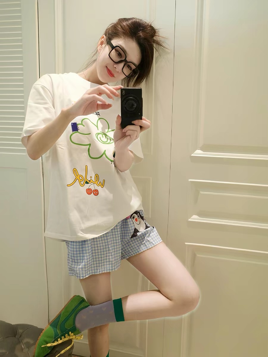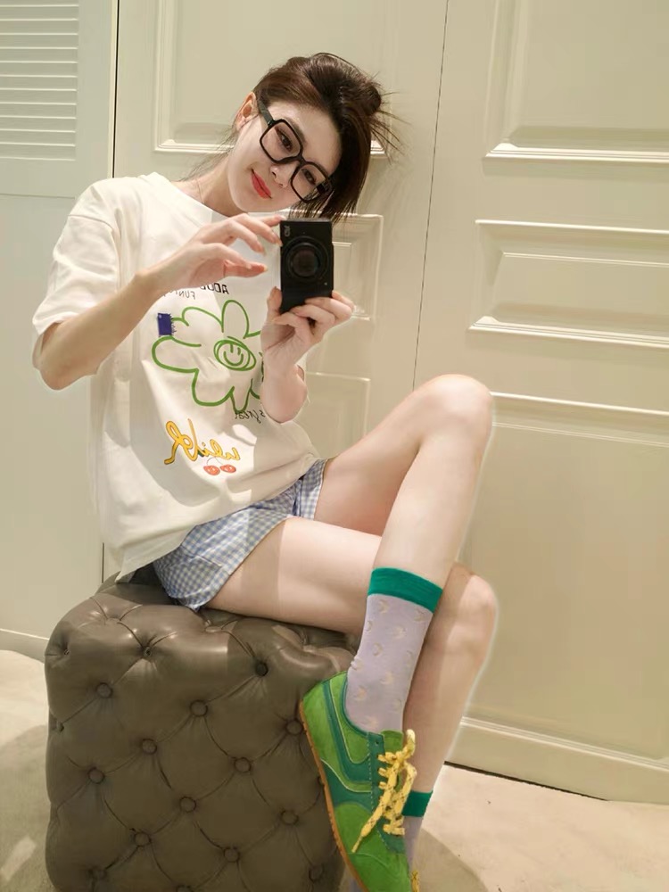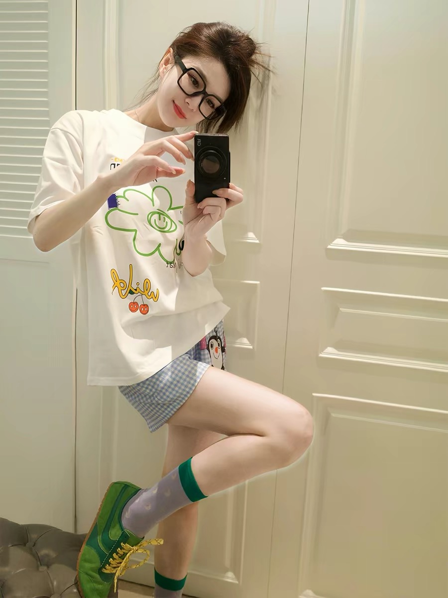 220 그램 순면 프린트 반팔 티셔츠 여성 2026 년 봄 여름 드레스 반팔 티셔츠 여성 한국 스타일 프린트