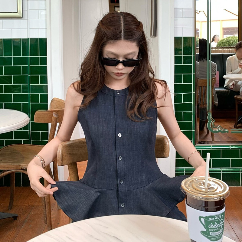 임산부 빅 사이즈 한국 스타일 얇은 스타일 민소매 조끼 이후 밴딩 반신 치마 세트