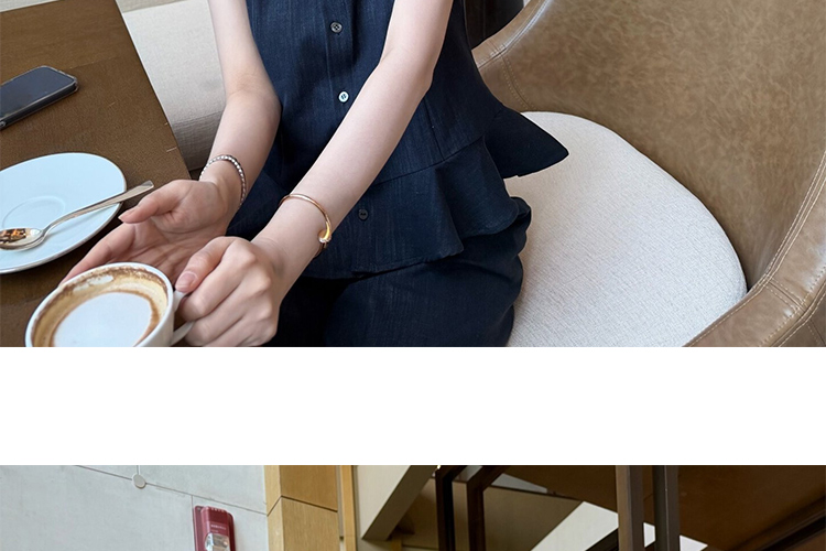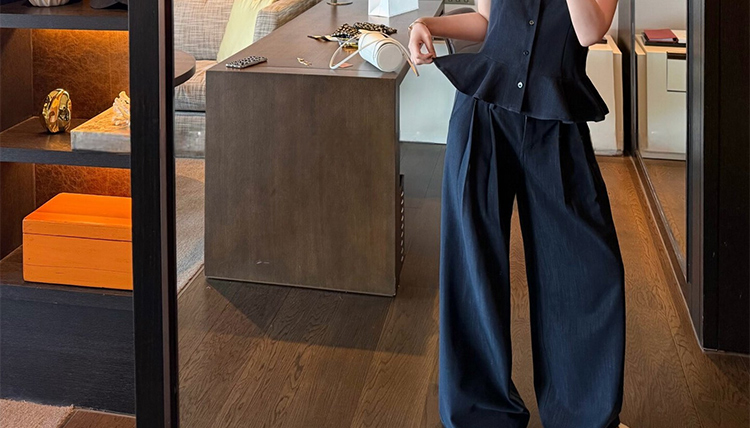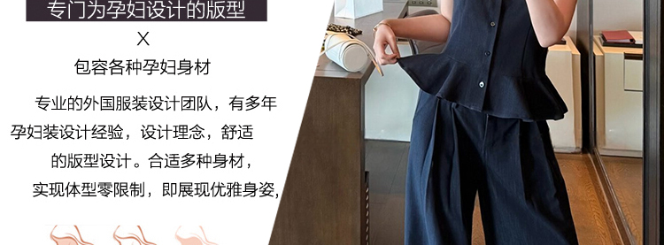 지금 임산부 프릴 민소매 셔츠 조끼 베스트 맨위 코디 캐주얼 와이드 레그 팬츠 두 조각 여성 세트