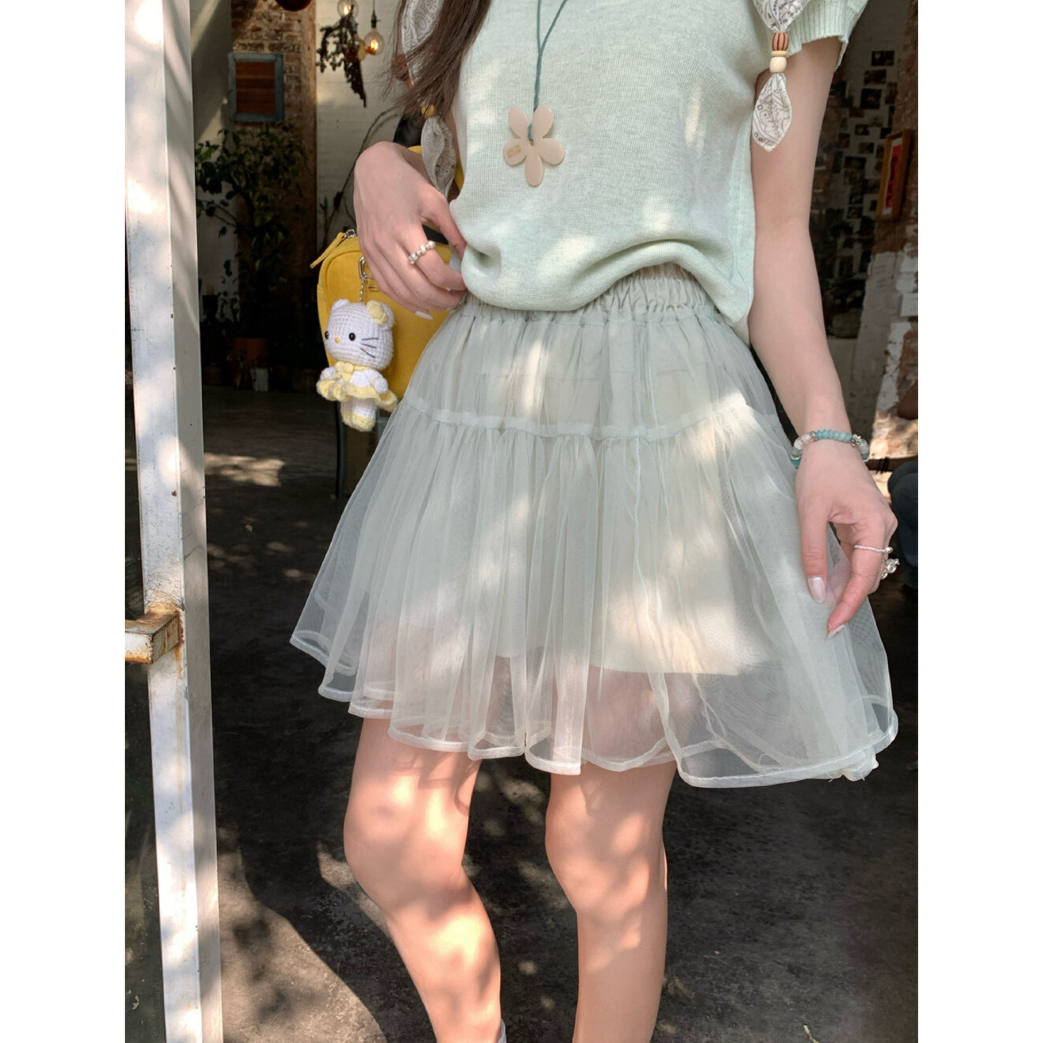 as official 달콤한 콩 작은 발레 여름 새로운 디자인 센스 꽃 망사 퍼프 슬립 작은 셔츠