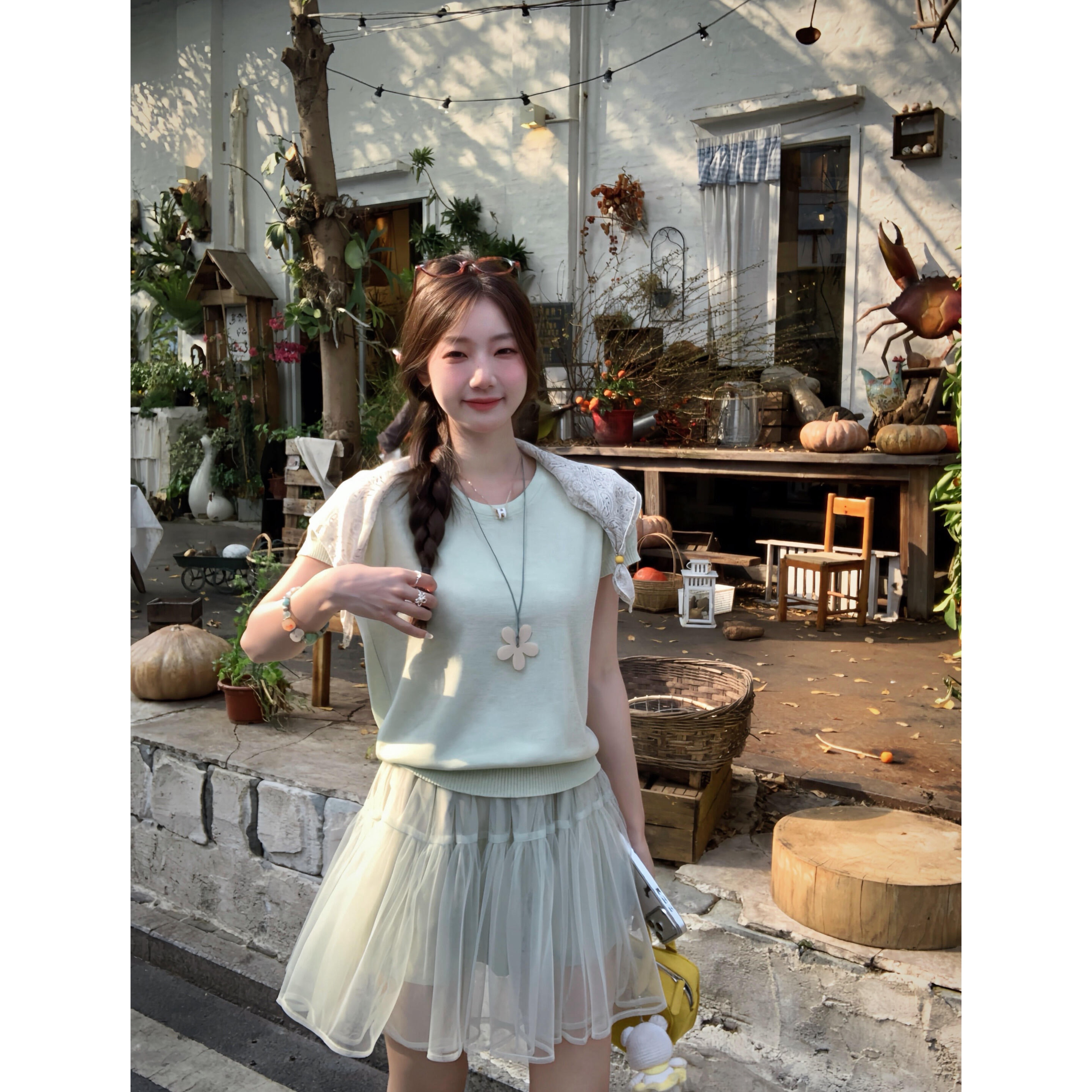 as official 한여름 낭만주의 요정 요정 분위기 센스 레이스 레이스 행침 목 조끼 여성 2026 여름