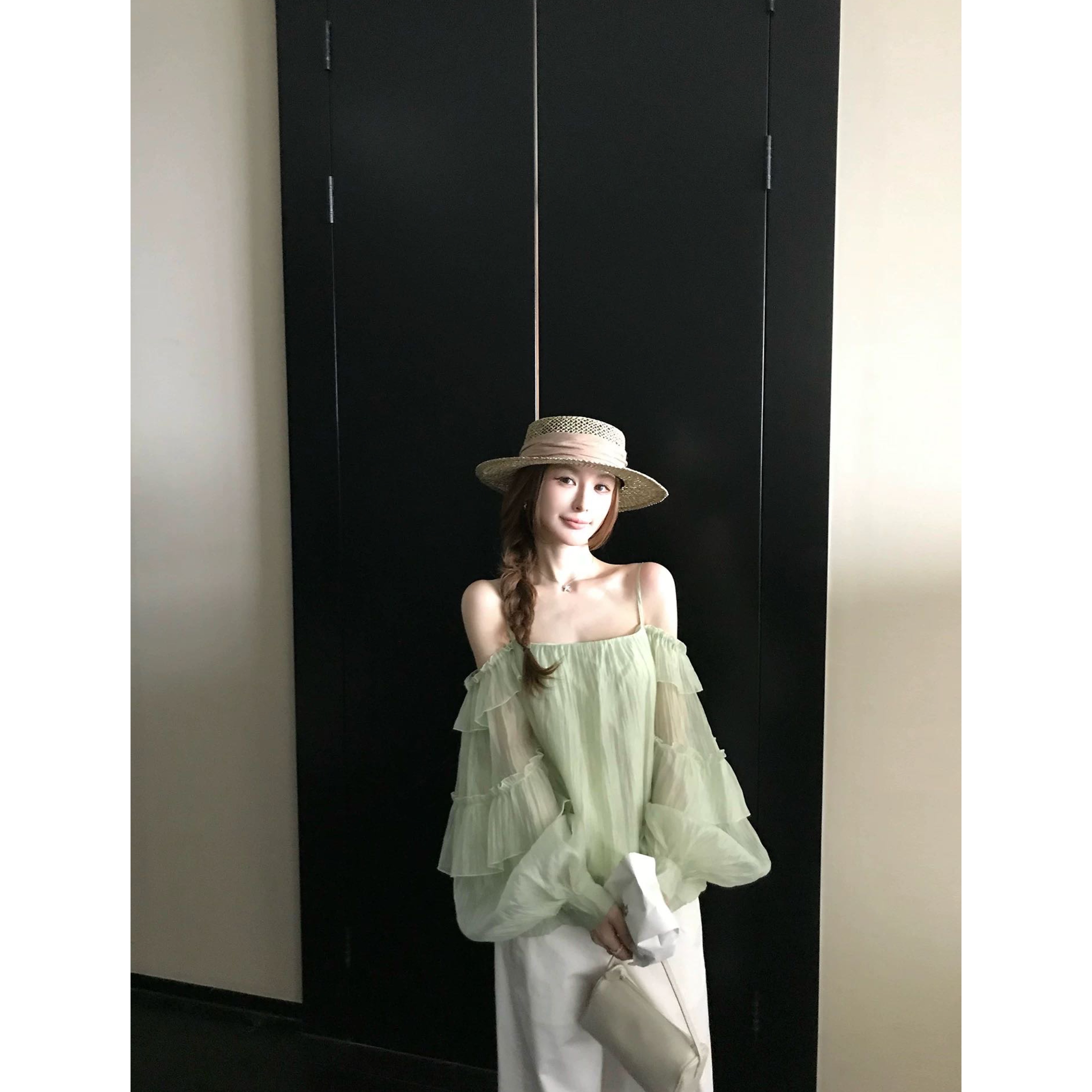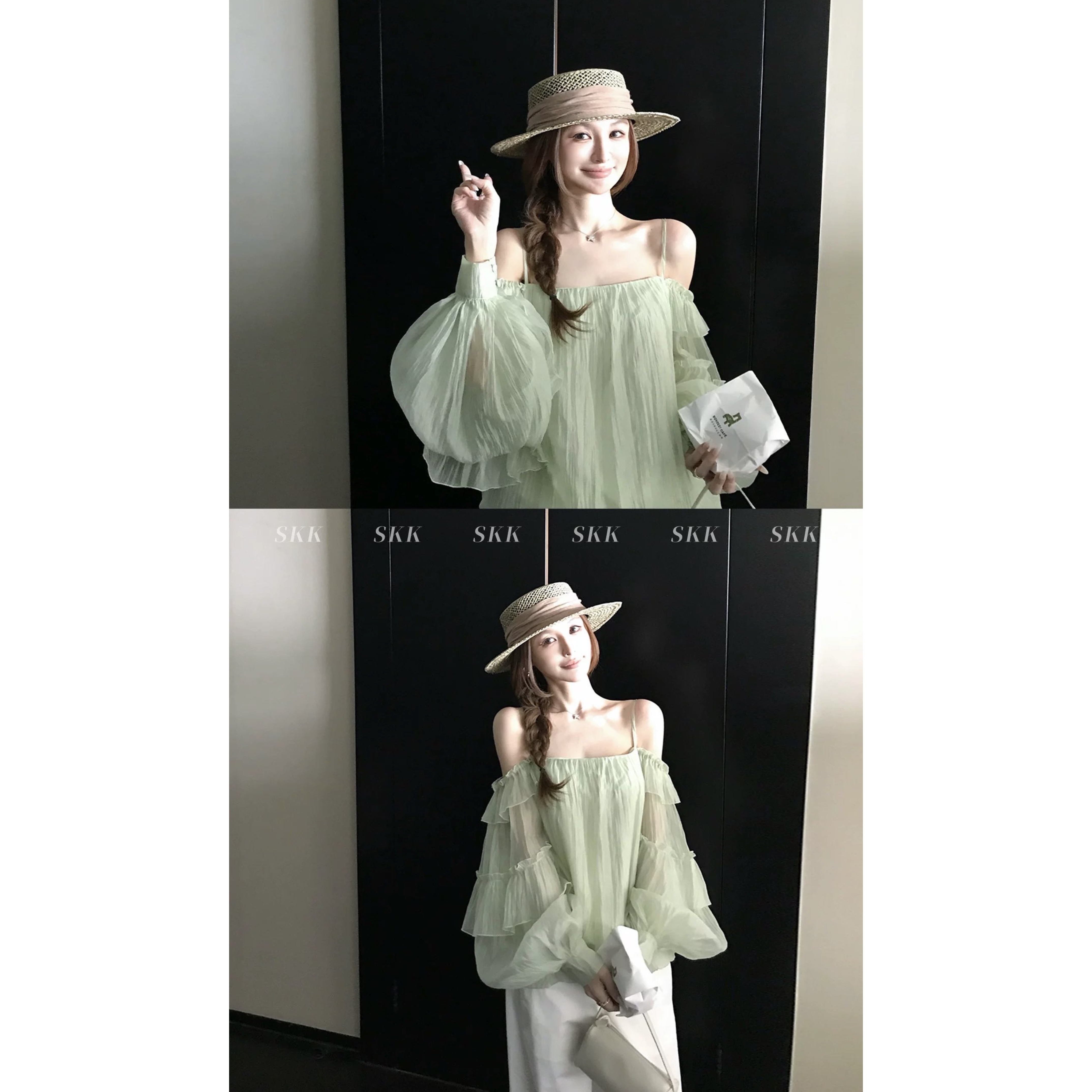 skk store 꿈 와일드 갤러리 감기 센스 프릴 꽃밭 슬립 쉬폰 긴팔 맨위 여름 얇은 스타일