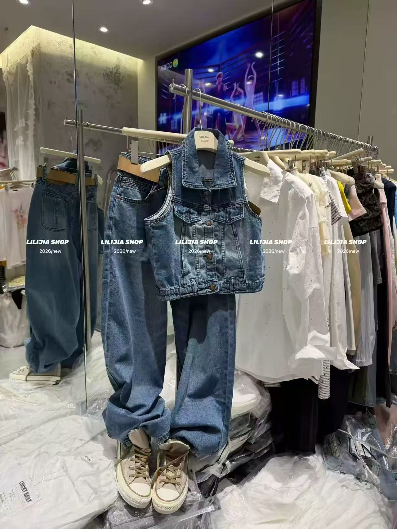 유럽 역 2026 여름 조류 소녀 철자 레이스 외국 가스 베스트 맨위 와이드 레그 팬츠 패션 캐주얼 세트 6526