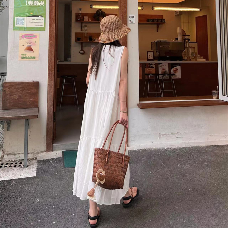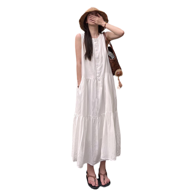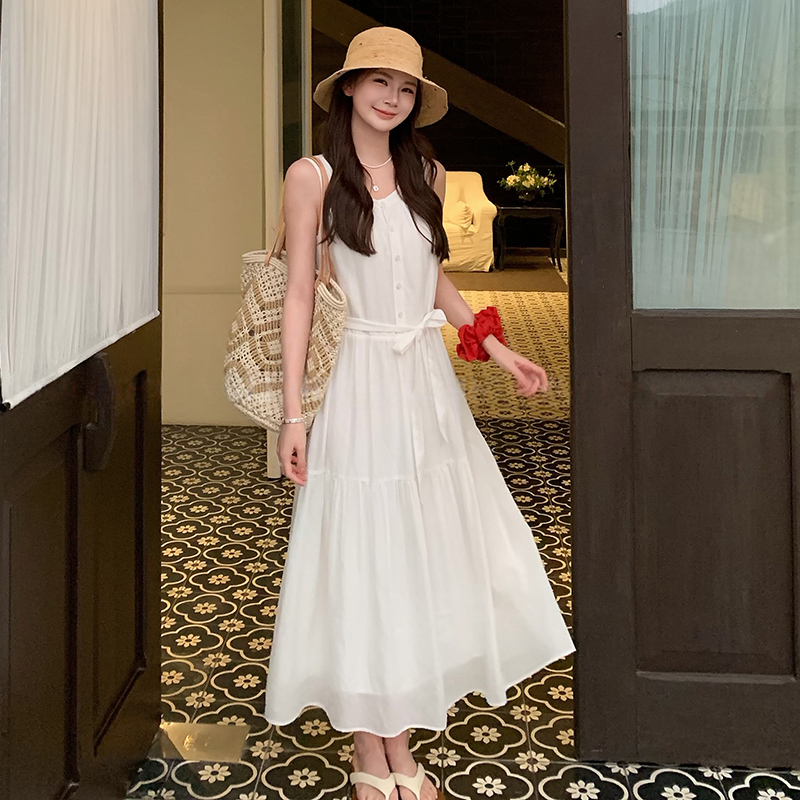 지금 지금 빅 사이즈 임산부 한국 스타일 부드러운 바람 민소매 요정 가스 롱 스커트 여성 고귀한 품격 자수 자수 요정 치마