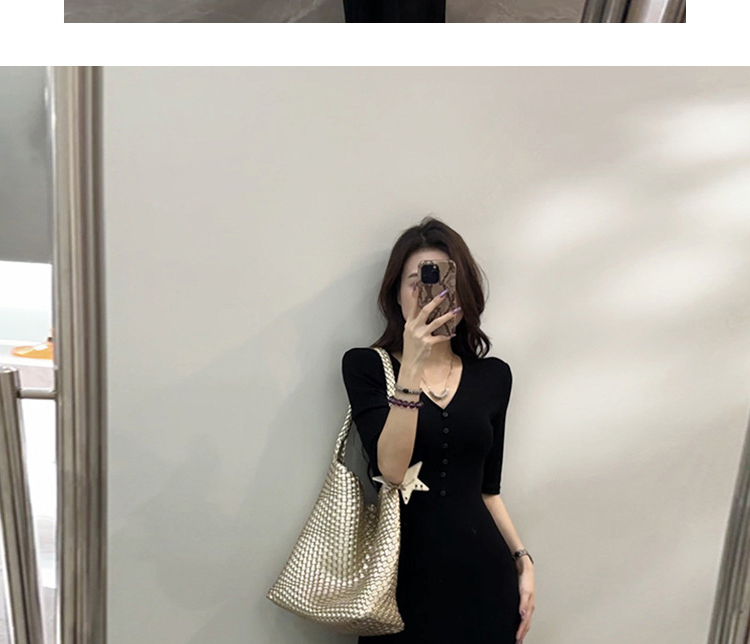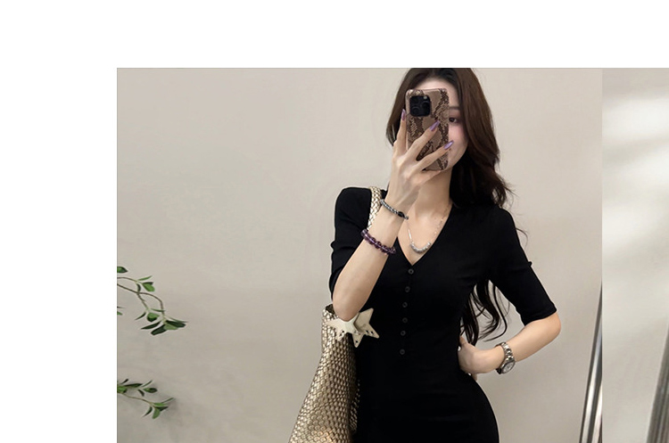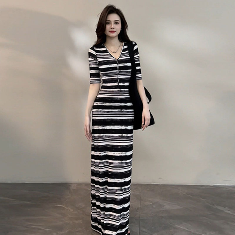 임산부 반팔 여성 드레스 여름 프랑스식 품격 디자인 센스 몸매 가꾸기 슬림해 보이는 V넥 타이트 스커트 롱 스커트 여성