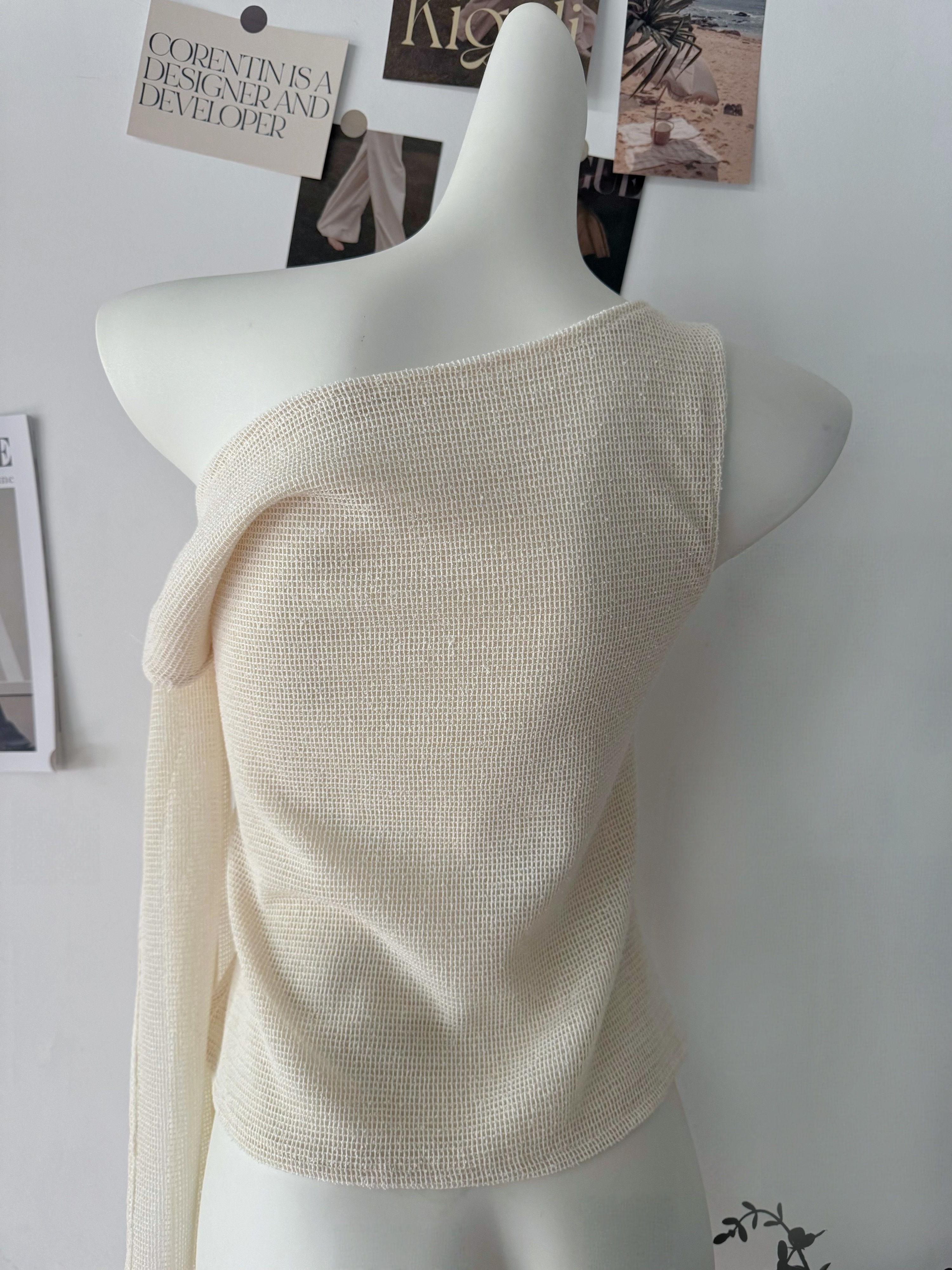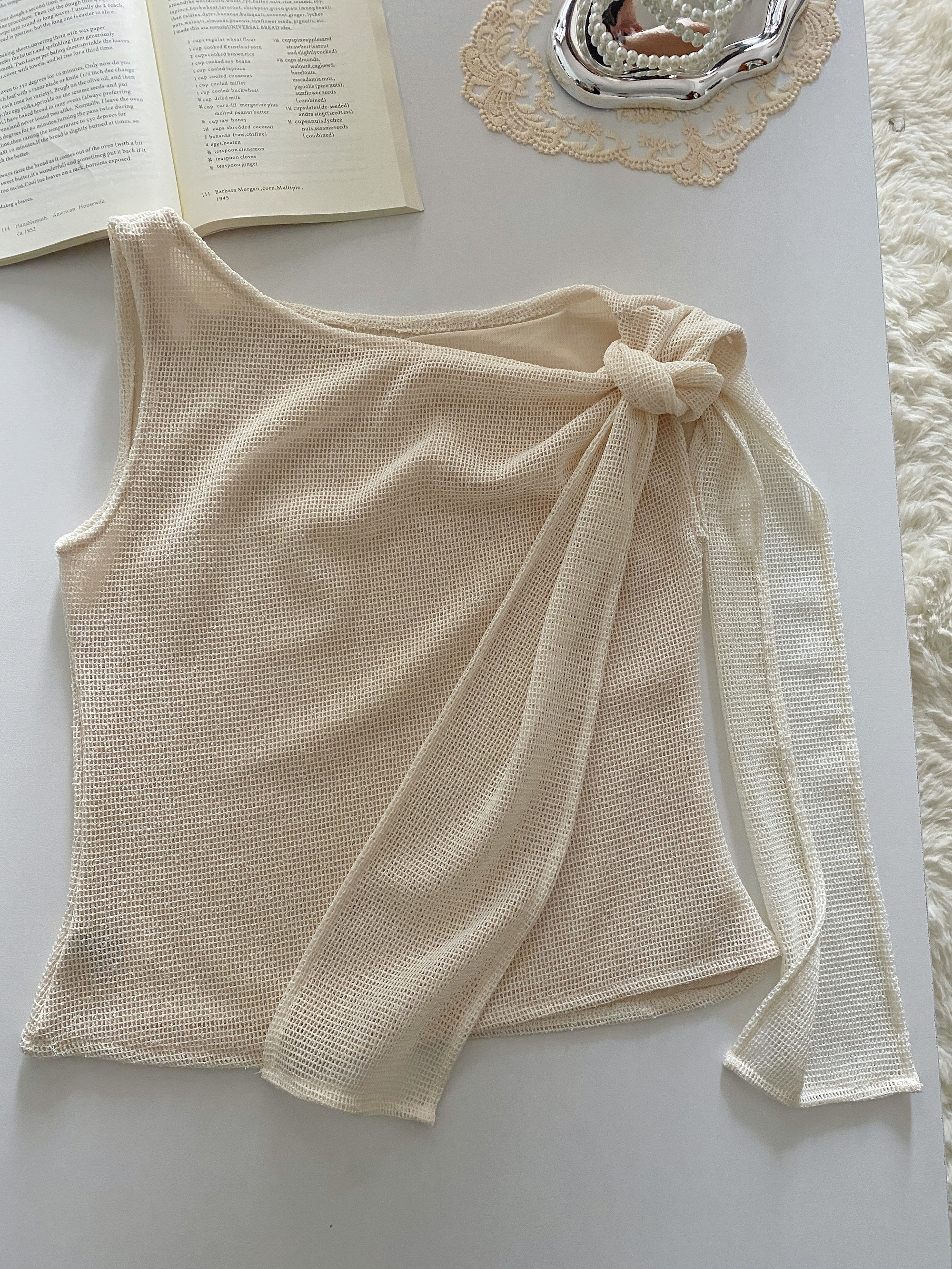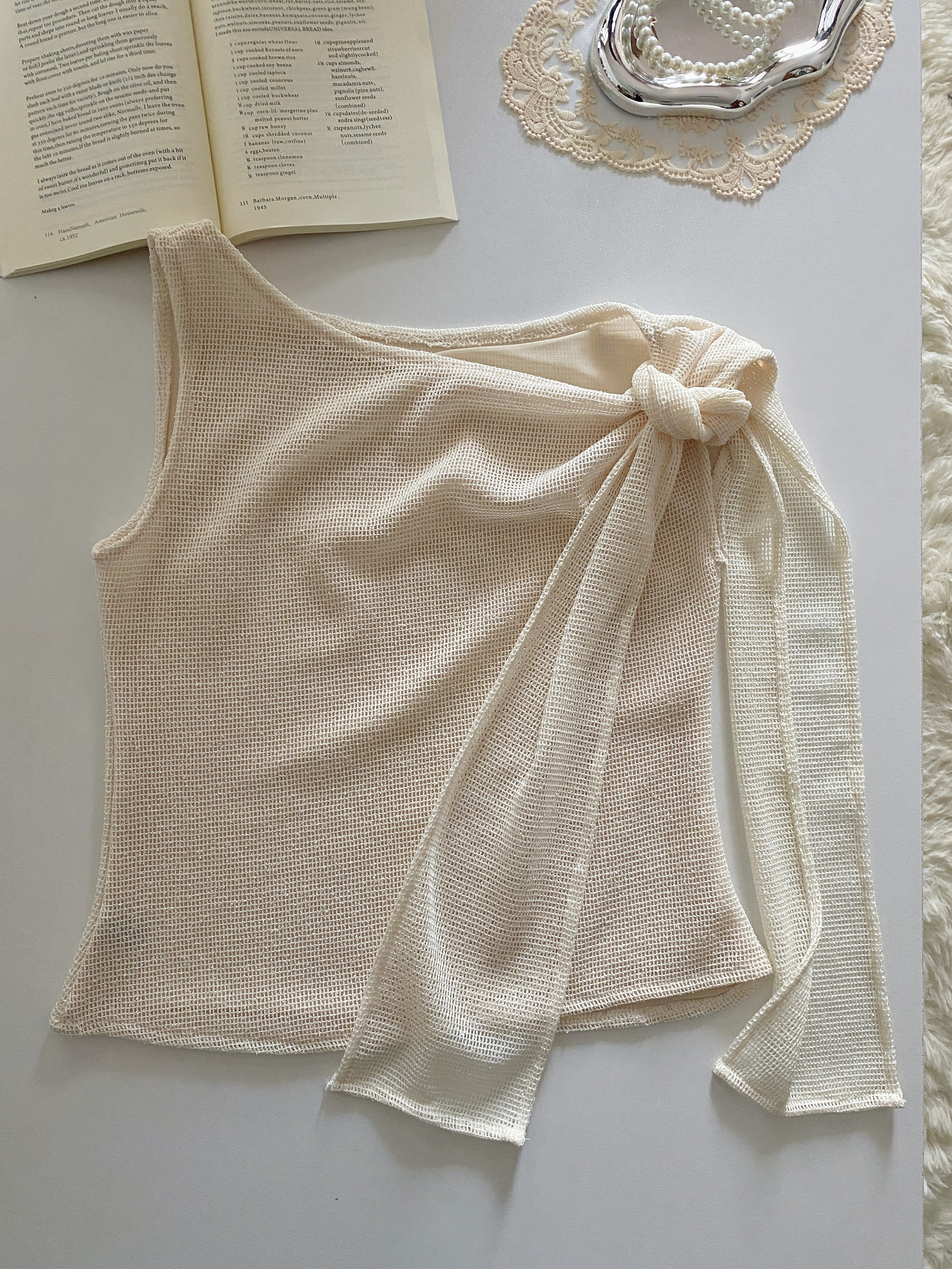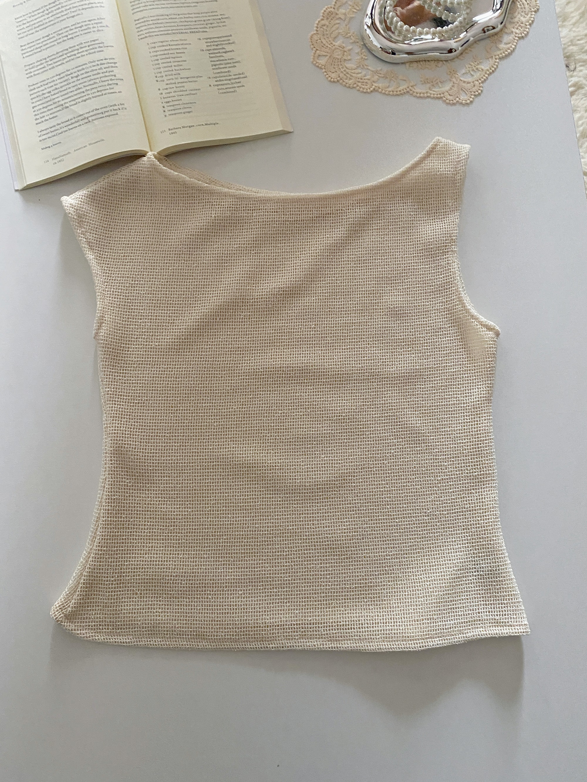 닝 부문 비스듬한 어깨 허리 수축 스트랩 민소매 티셔츠 여성 여름 한 부서 품격 패션 다용도 몸매 가꾸기 슬림해 보이는 맨위