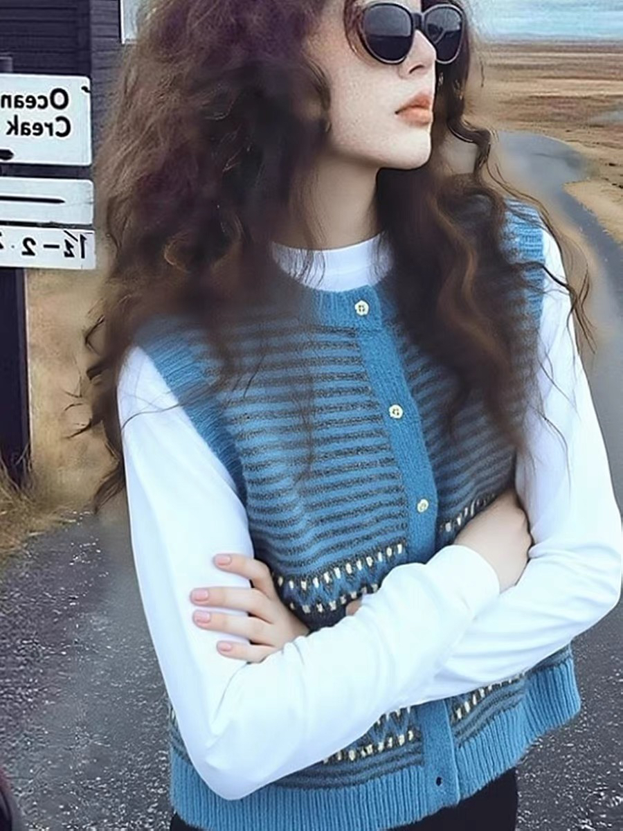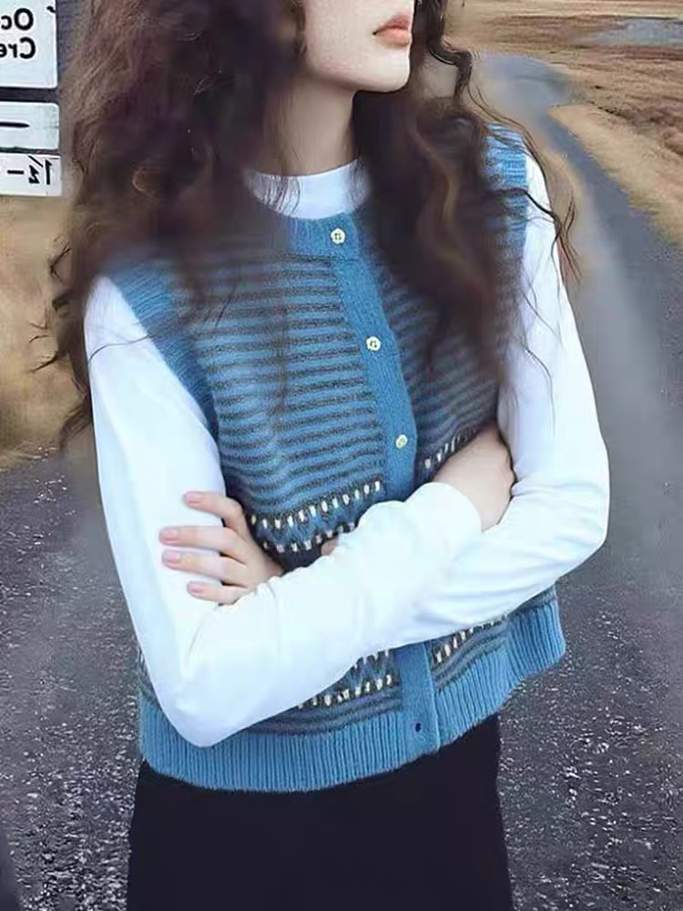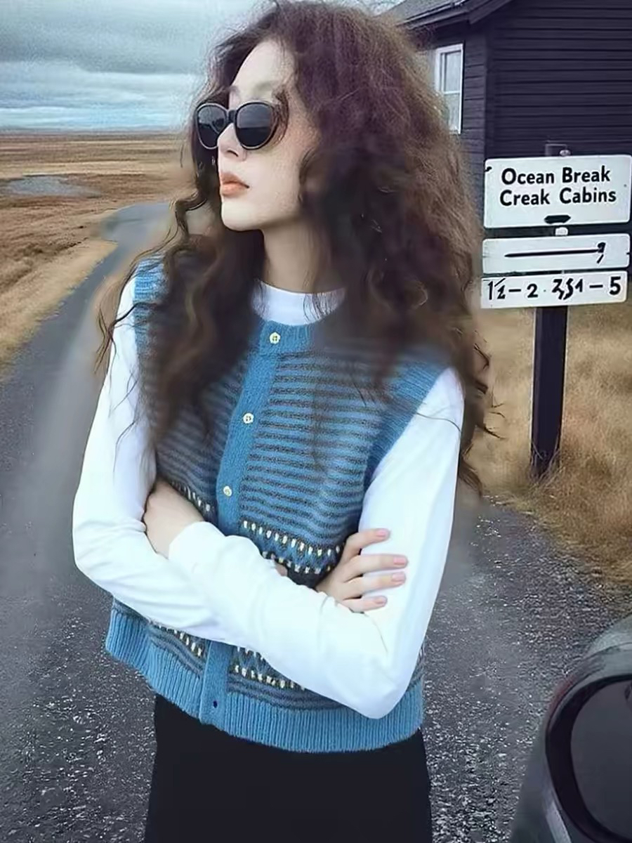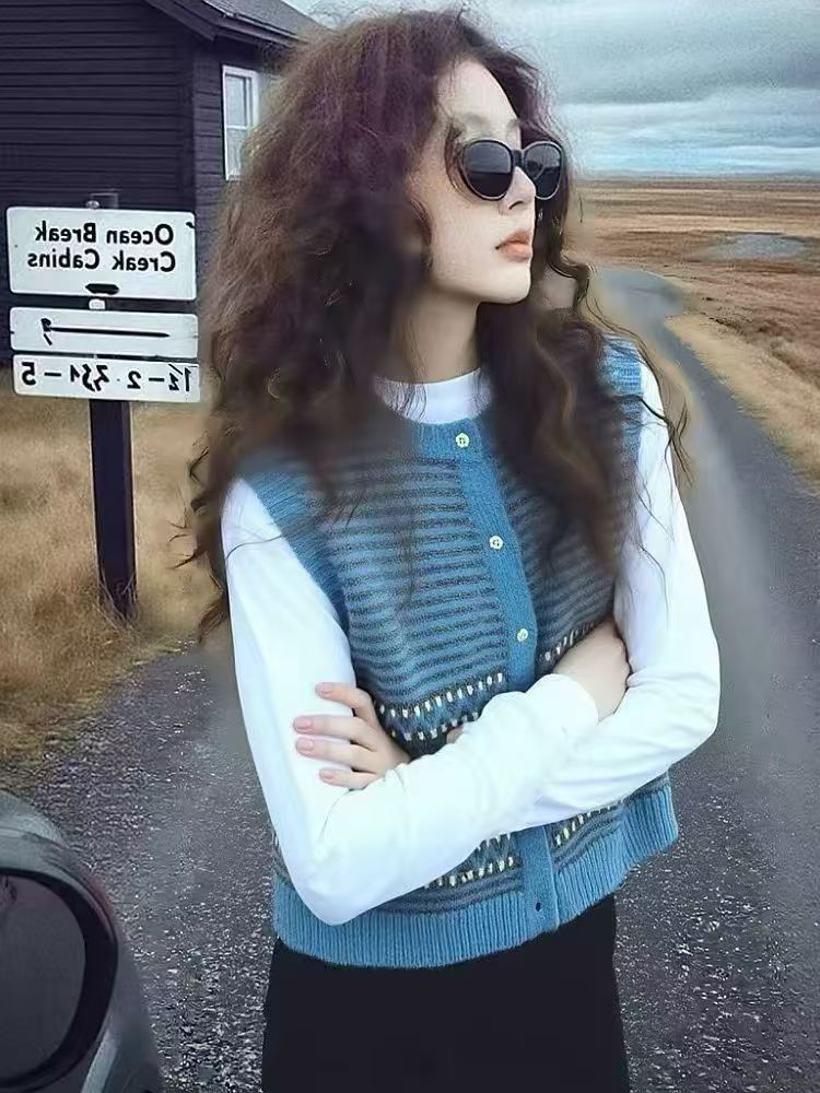 작은 샤넬 스타일 파란색 얼음 실크 니트 조끼 여성 2026 여름 섹션 디자인 센스 레트로 품격 슬림해 보이는 민소매 맨위