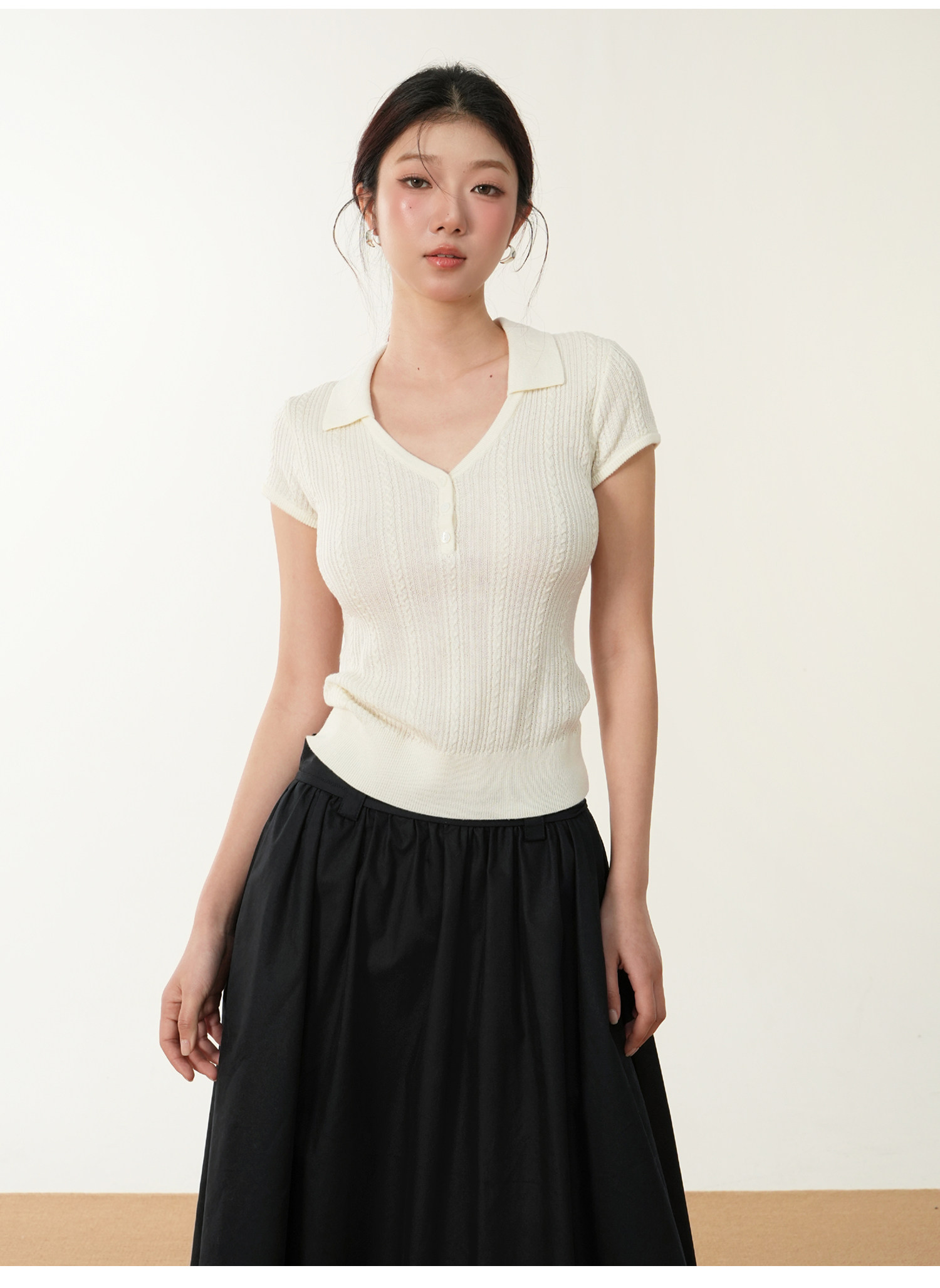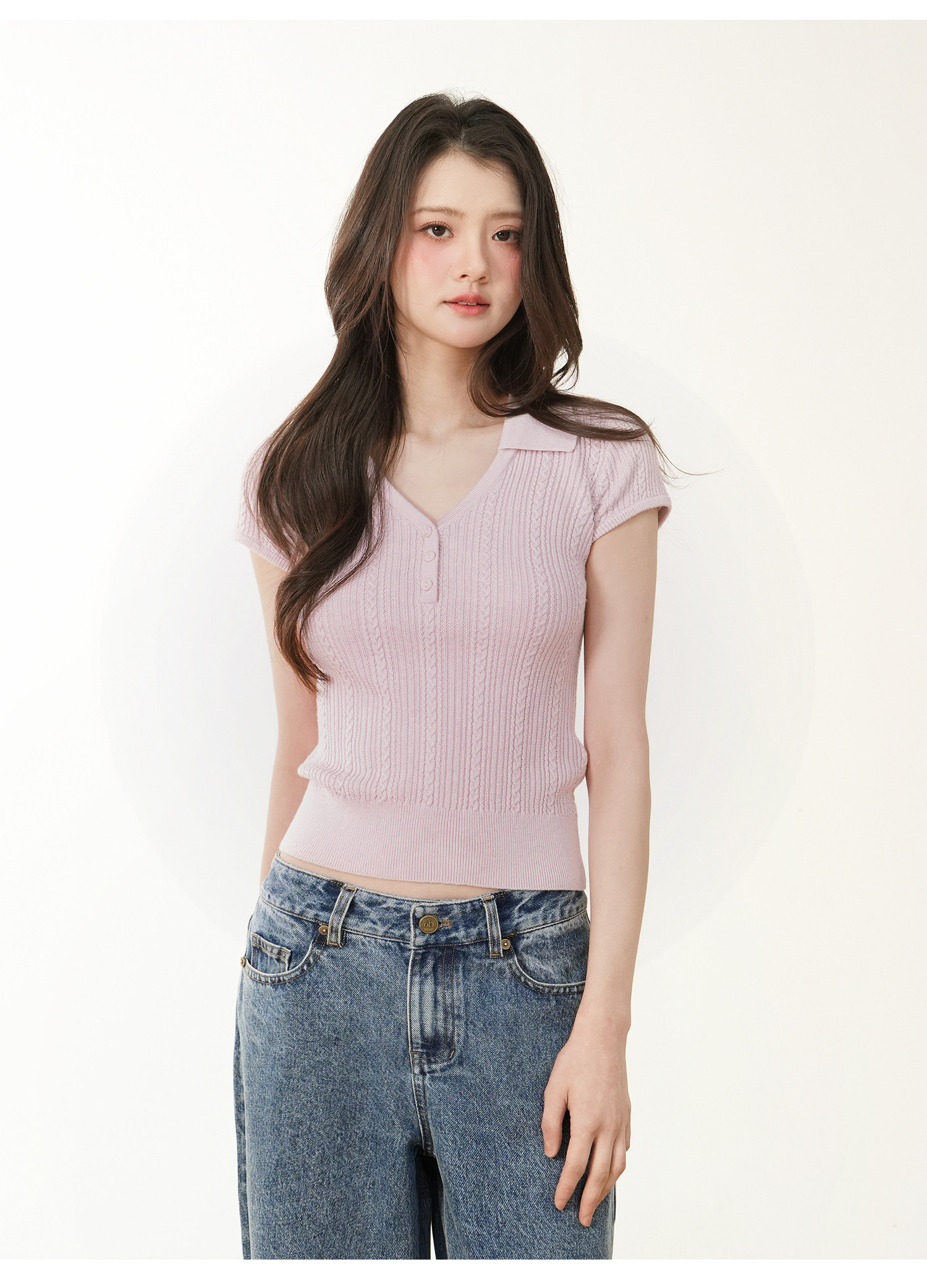 오래된 돈 바람 얼음 실크 POLO 칼라 니트 스웨터 여성 여름 차가운 센스 티셔츠 고급 센스 캐주얼 품격 슬림해 보이는 맨위