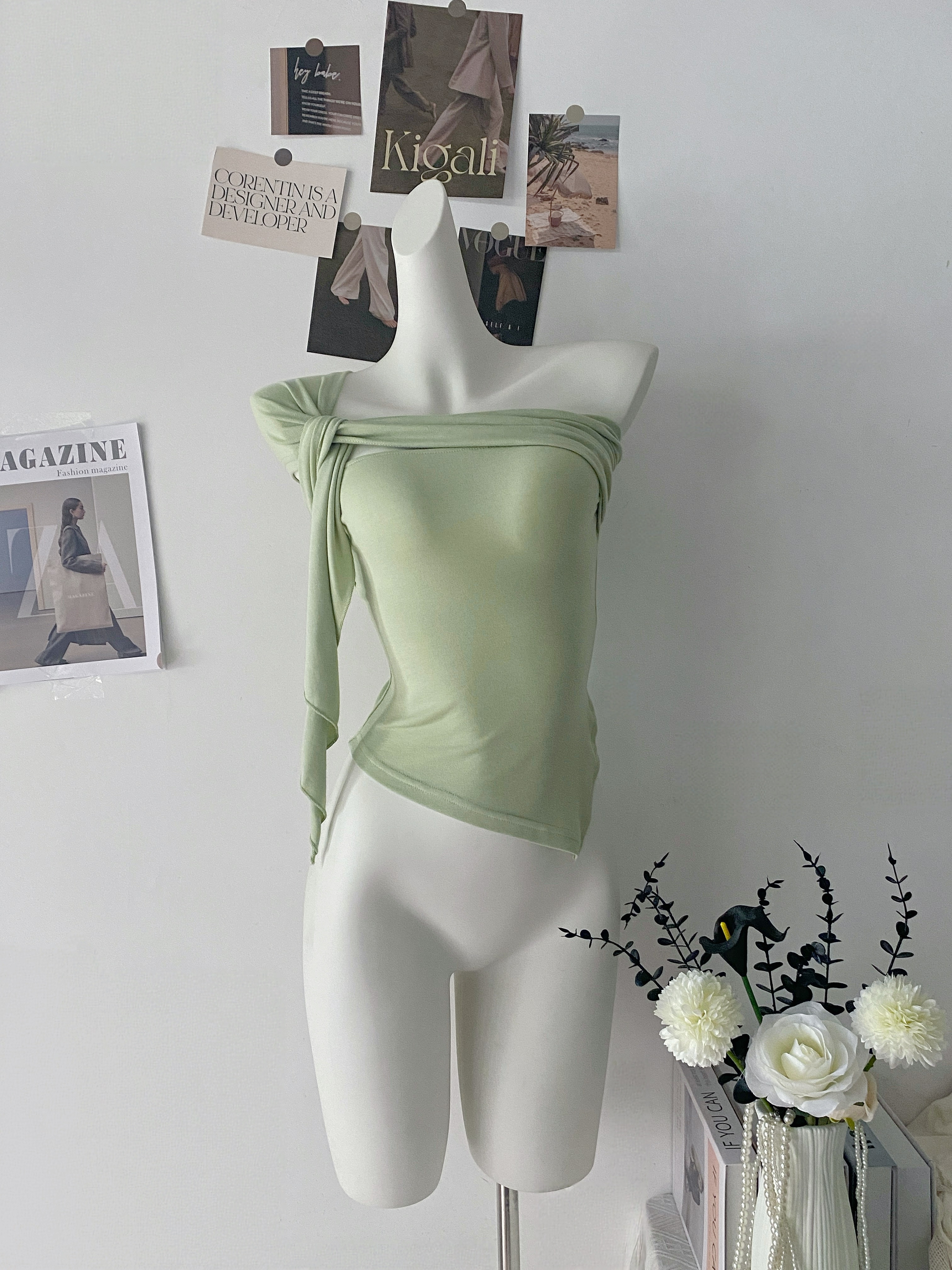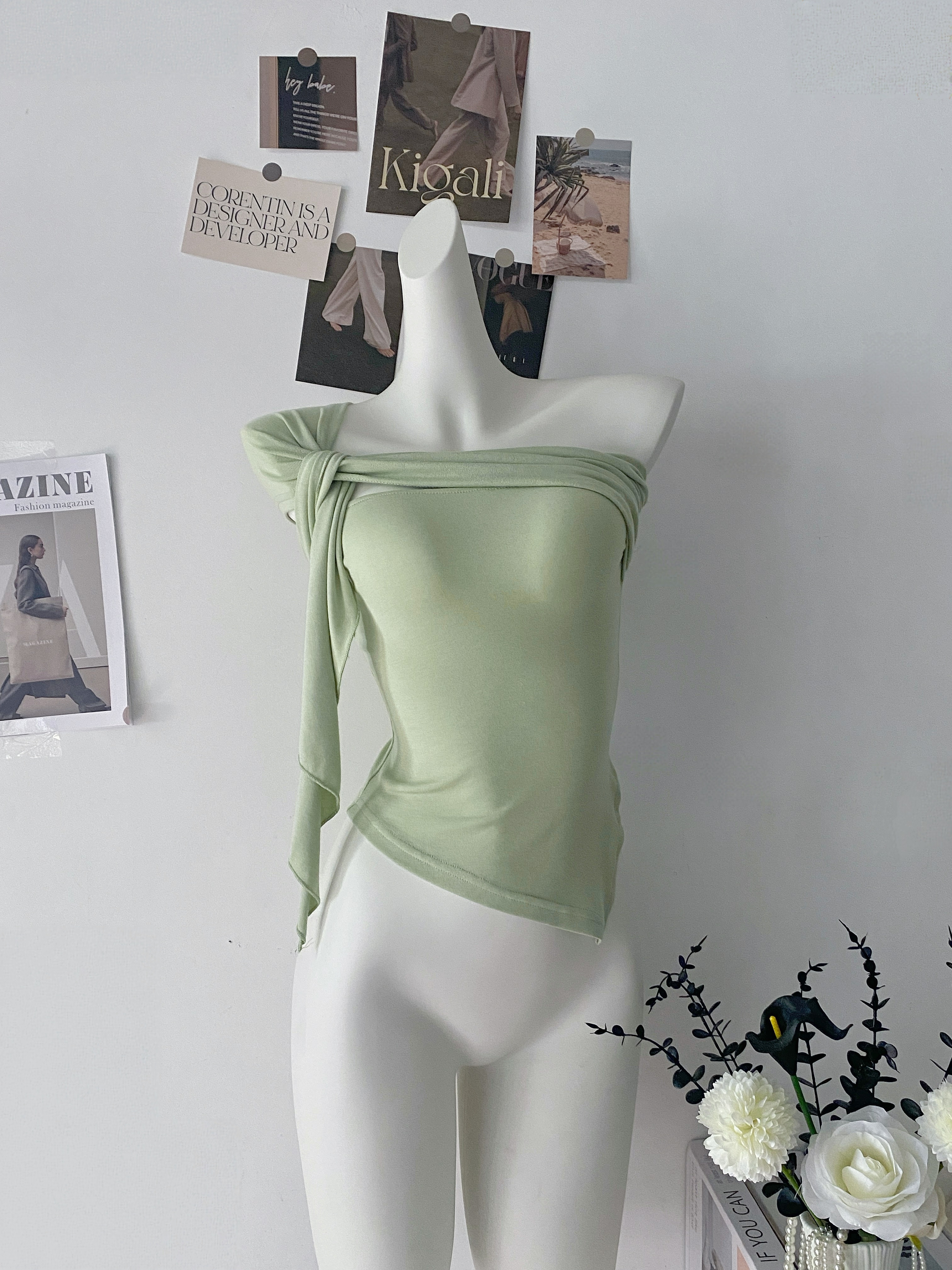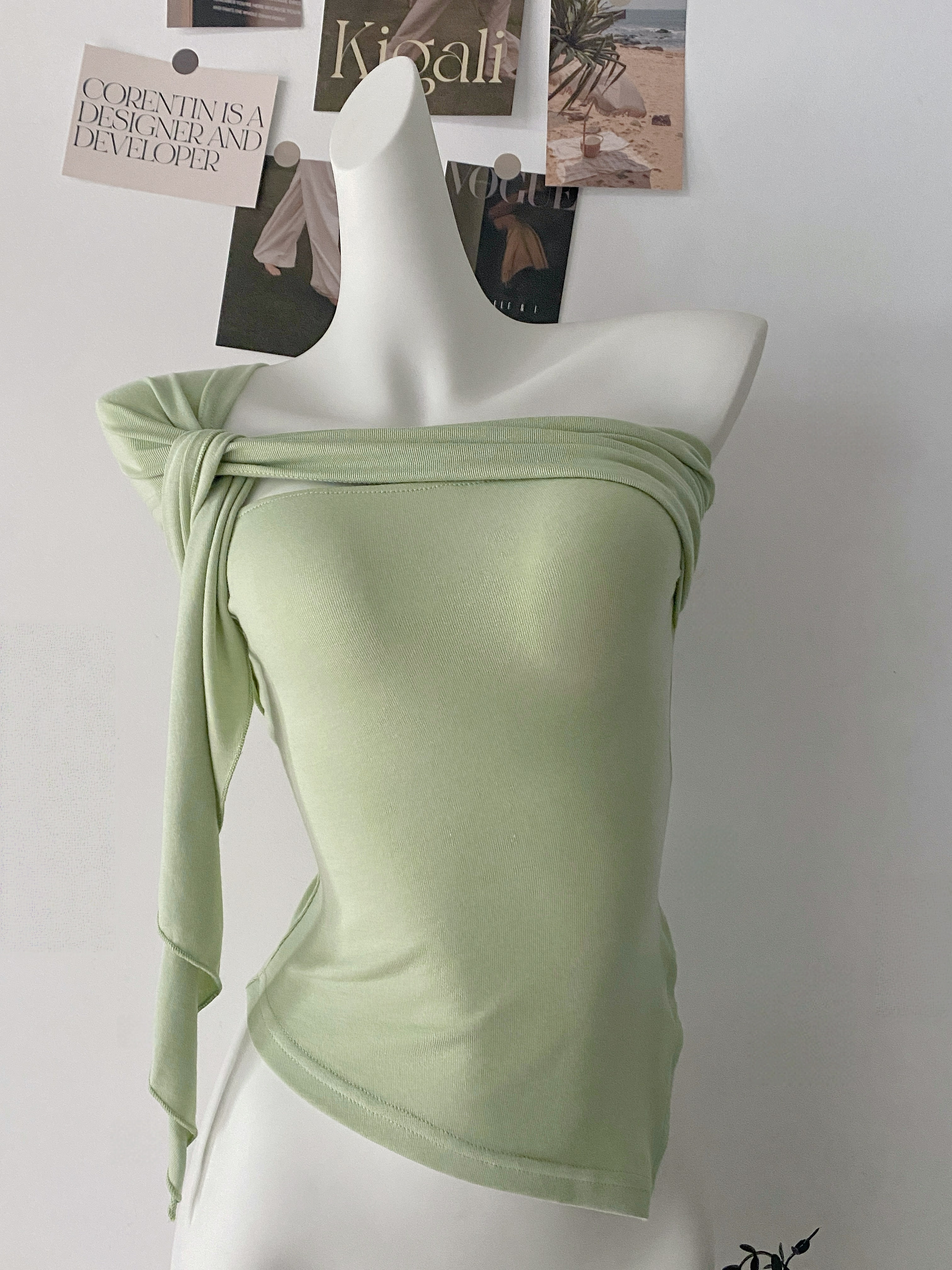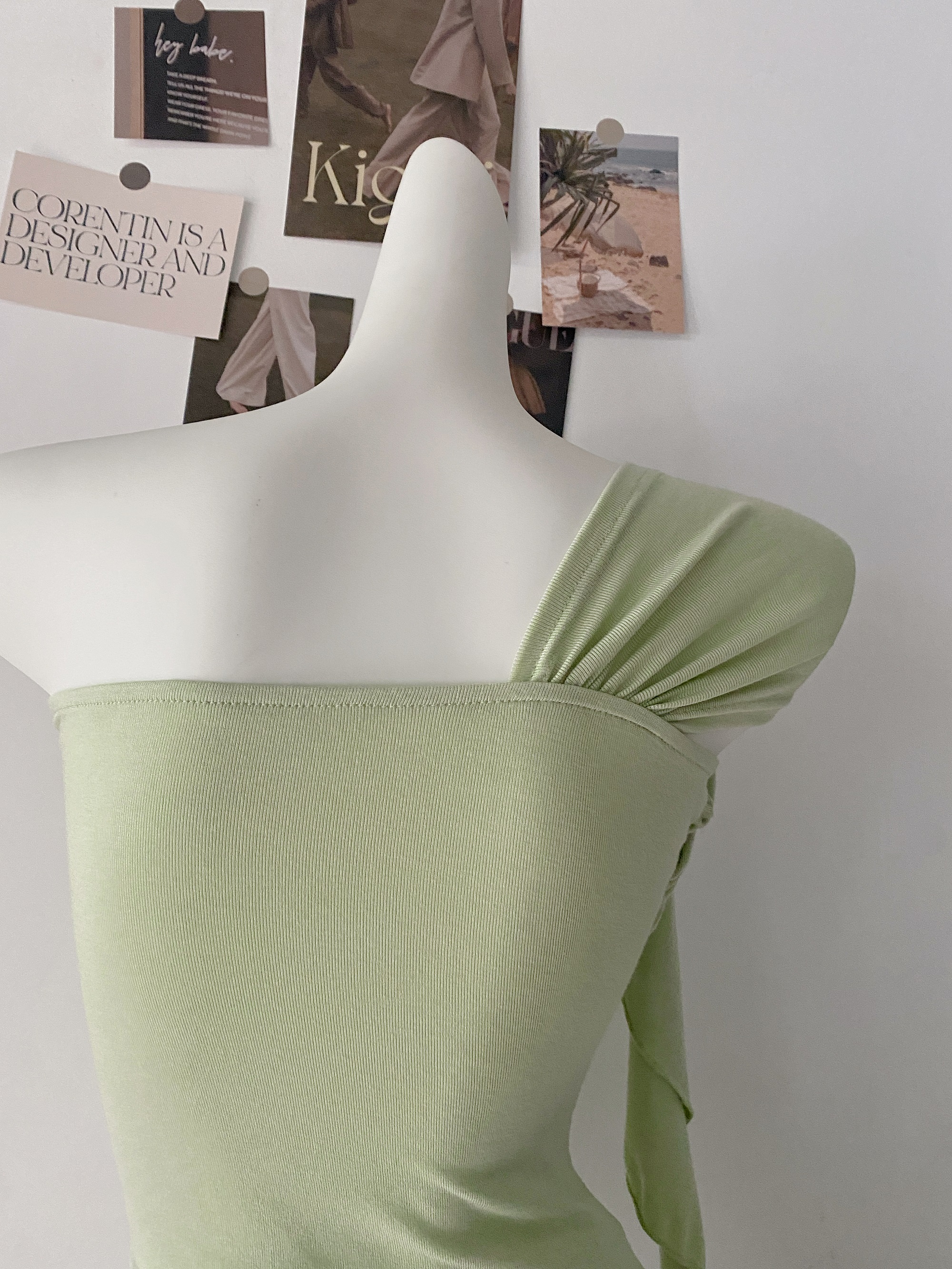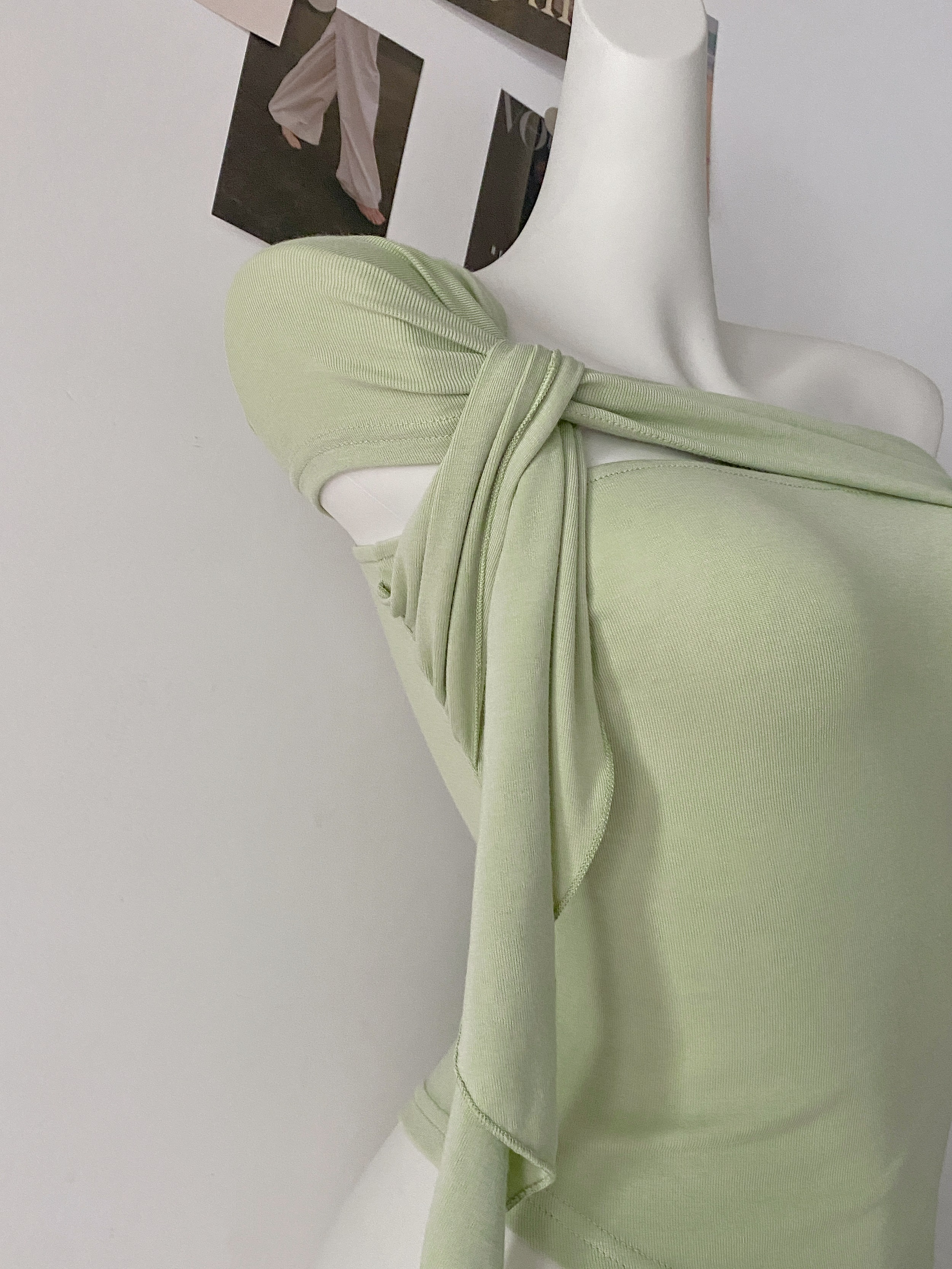 닝 부문 비스듬한 어깨 허리 수축 스트랩 민소매 티셔츠 여성 여름 한 부서 품격 패션 다용도 몸매 가꾸기 슬림해 보이는 맨위