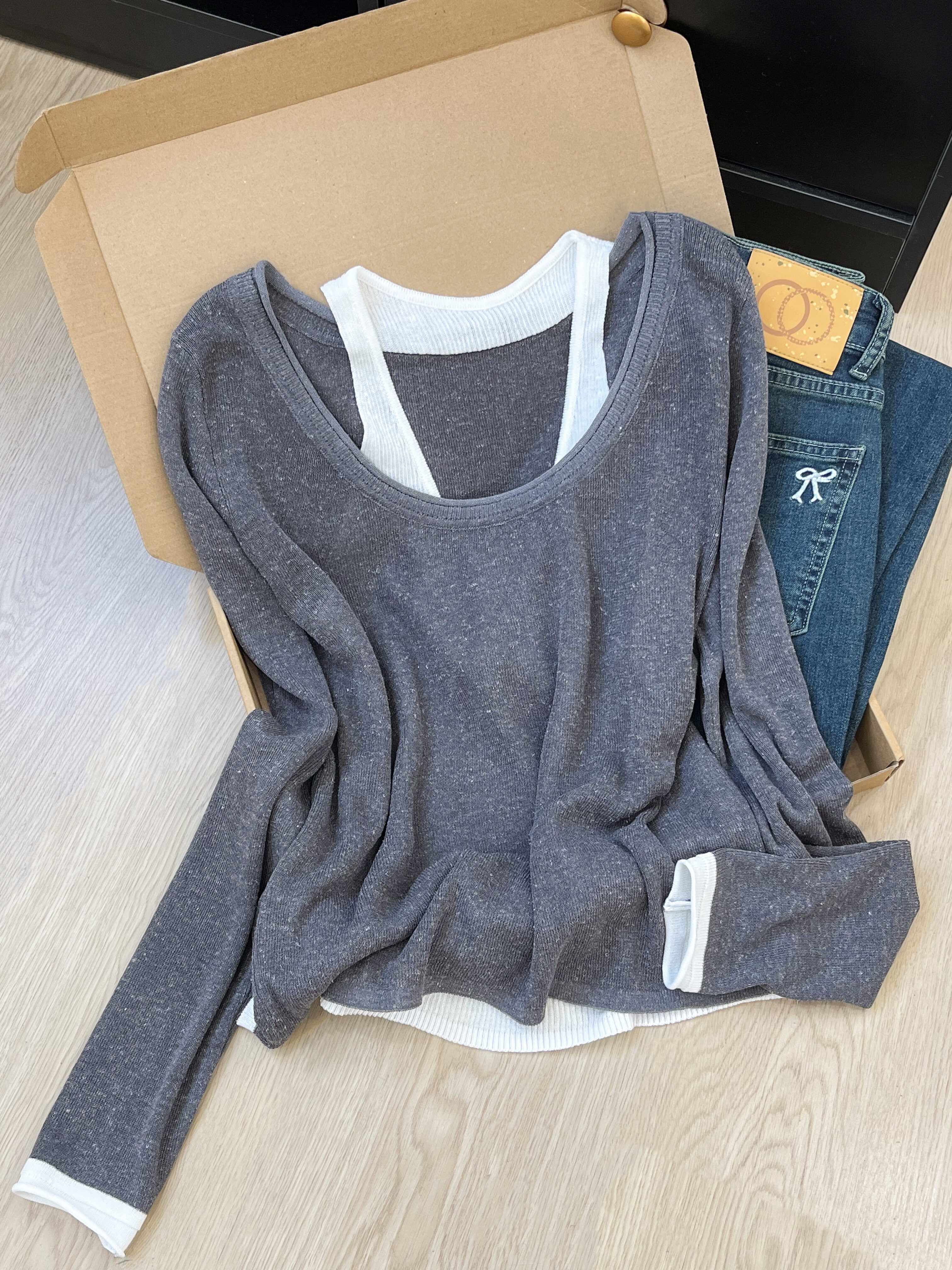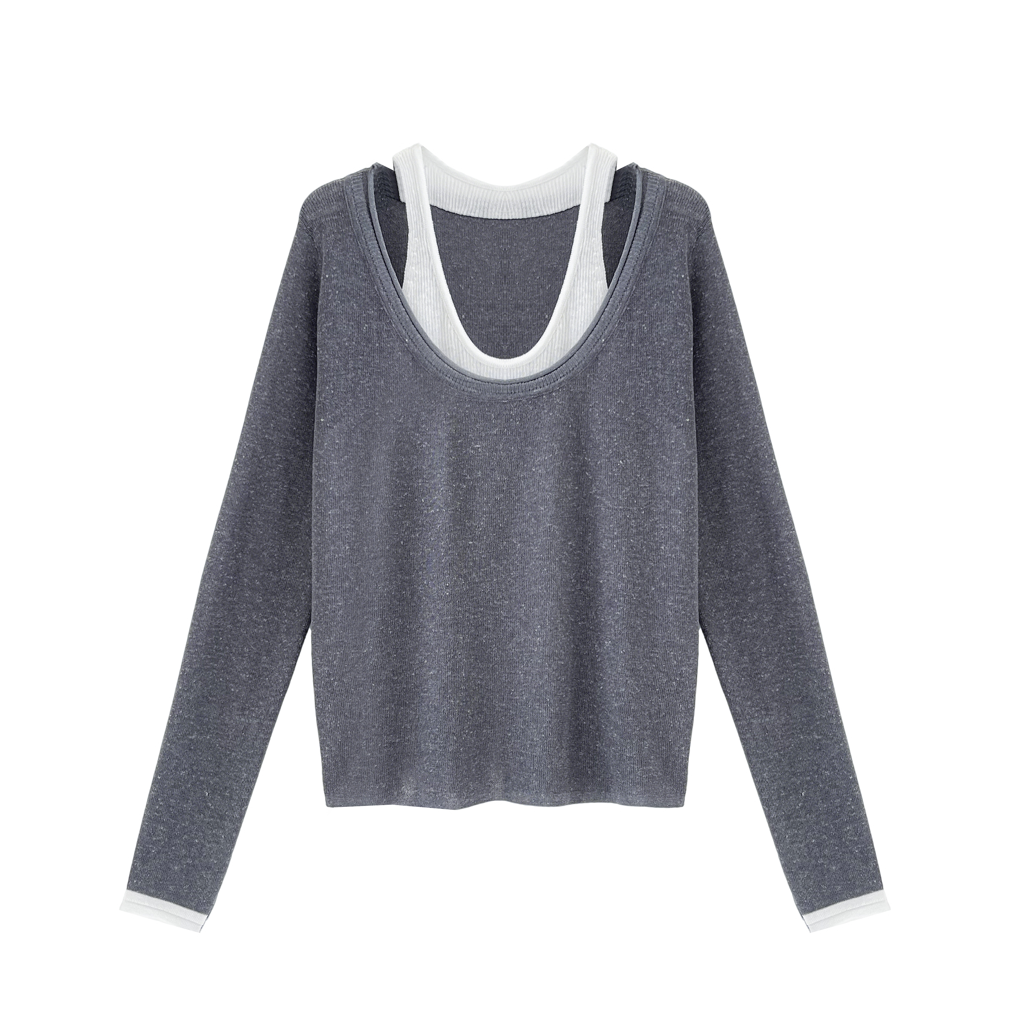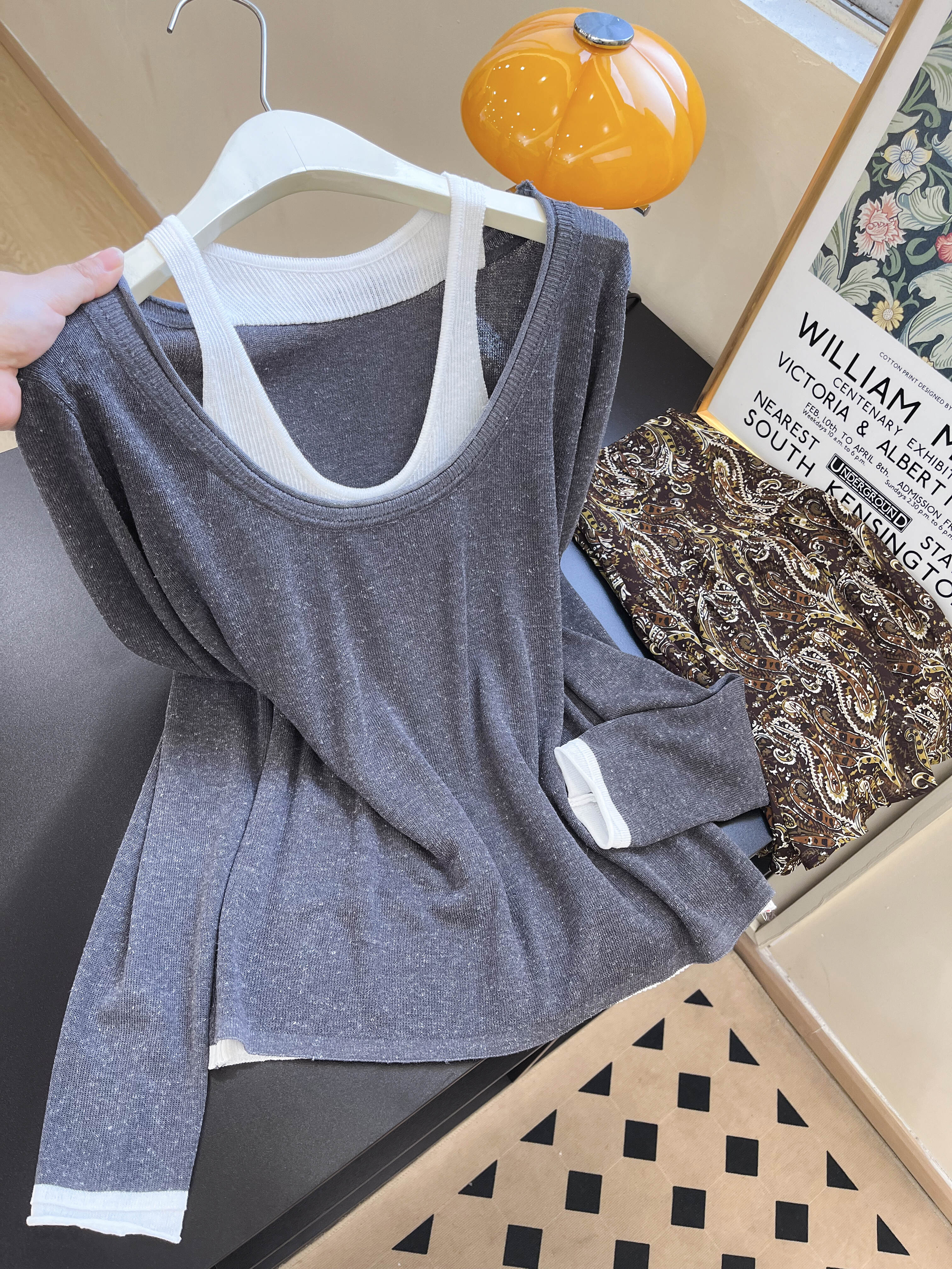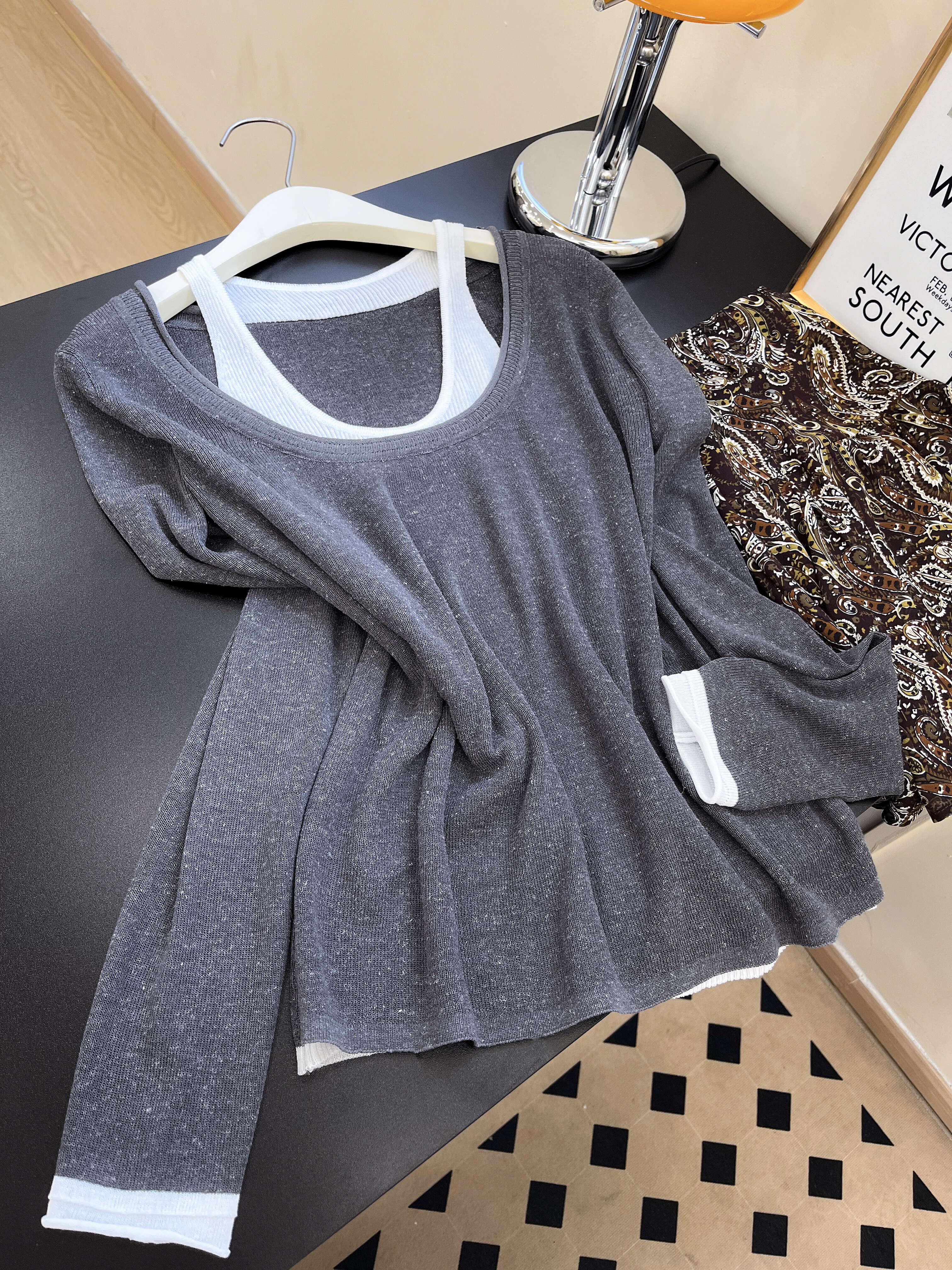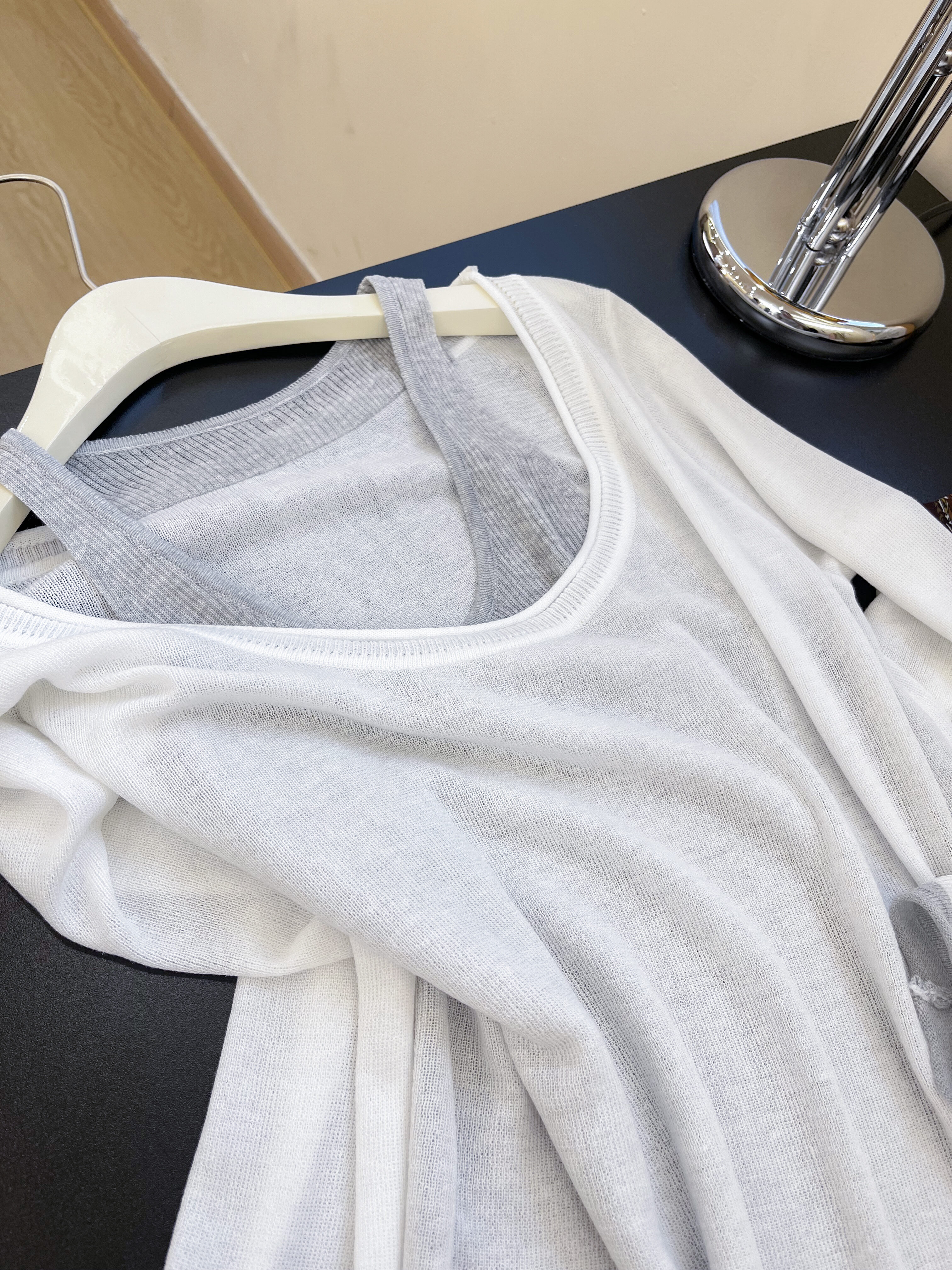 실사 봄 여름 느긋한 니트 스웨터 여성 태양 보호 셔츠 조끼 페이크 레이어드 오래된 돈 맨위