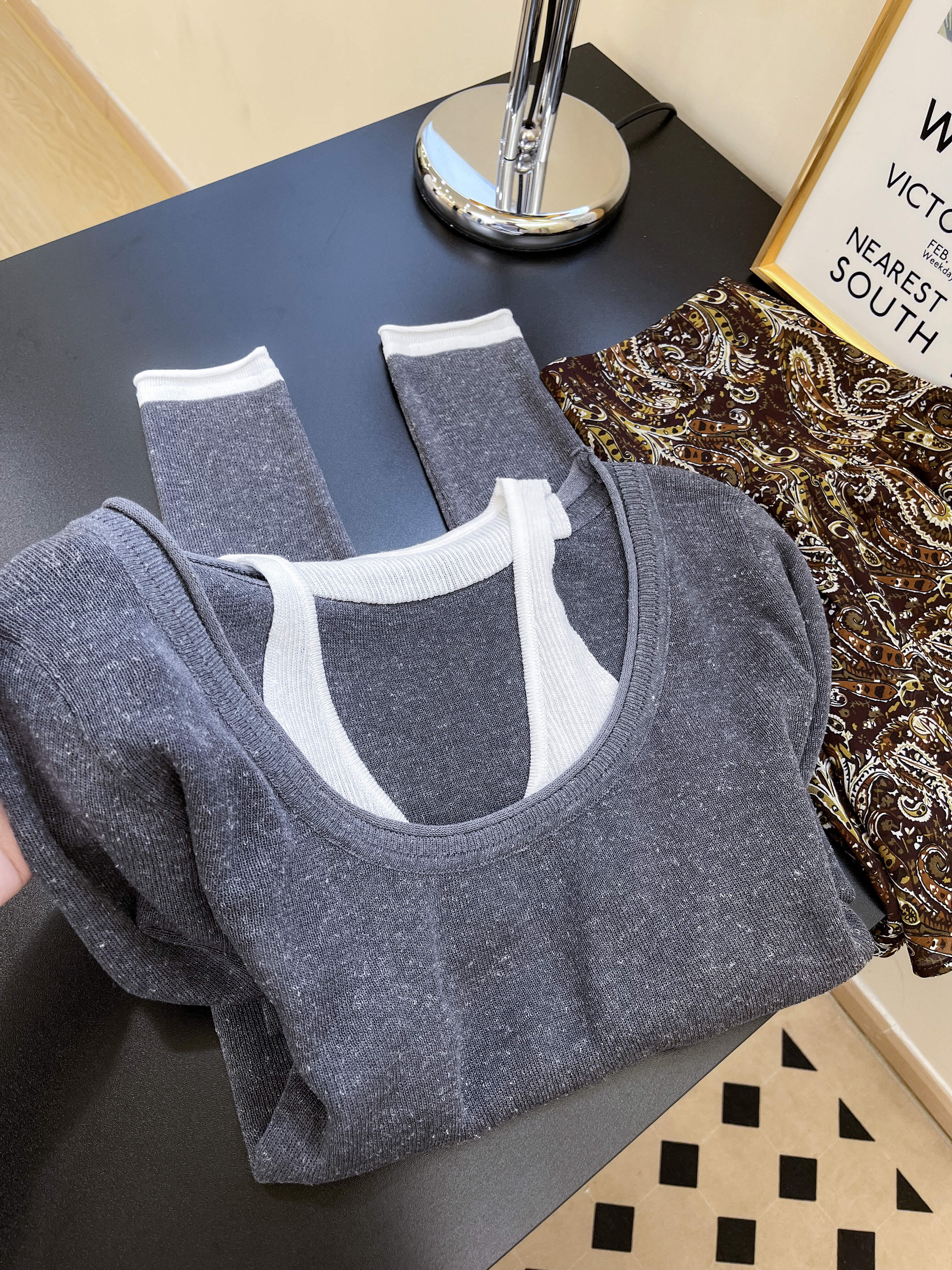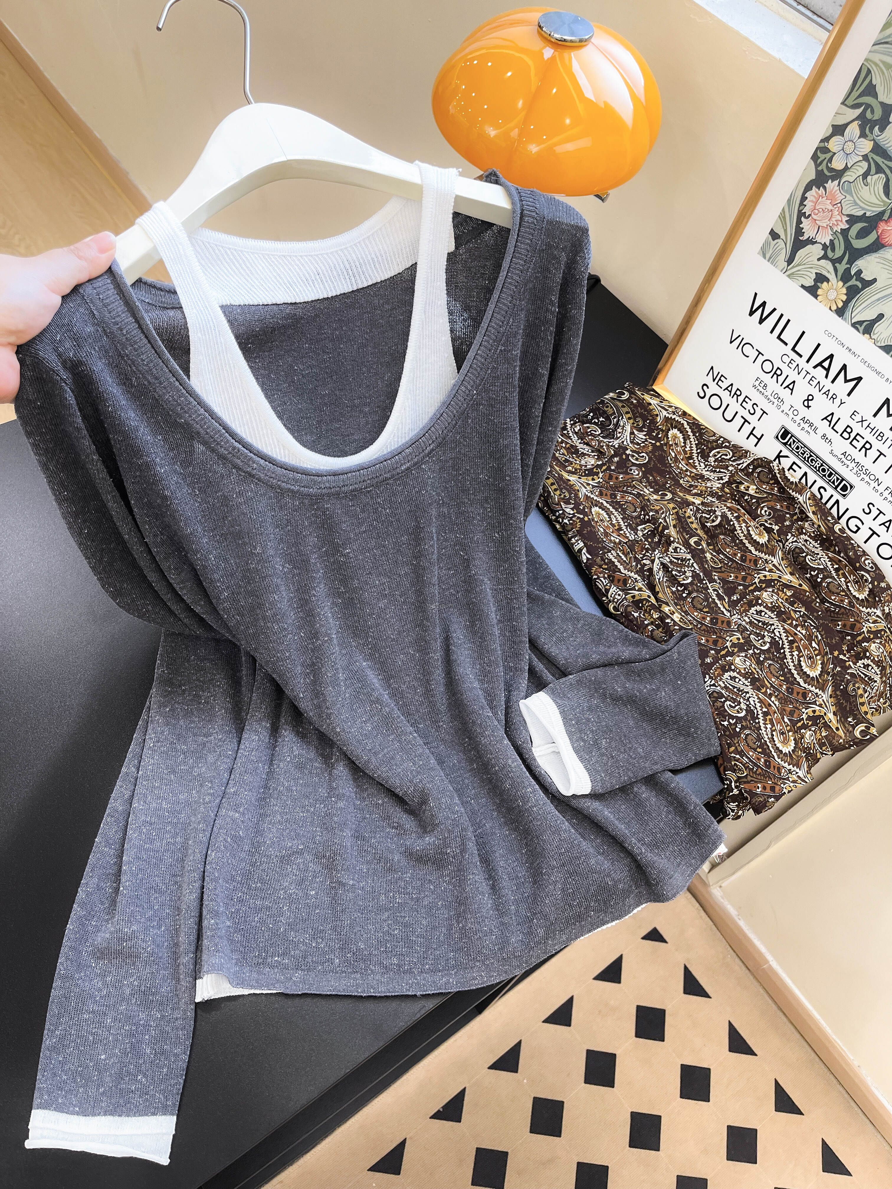 실사 순수한 욕망 바람 화이트 투피스 세트 만나는 긴팔 티셔츠 여성 이른 봄 아름다운 디자인 센스 인사이드 가져 가라. 몸매 가꾸기 맨위
