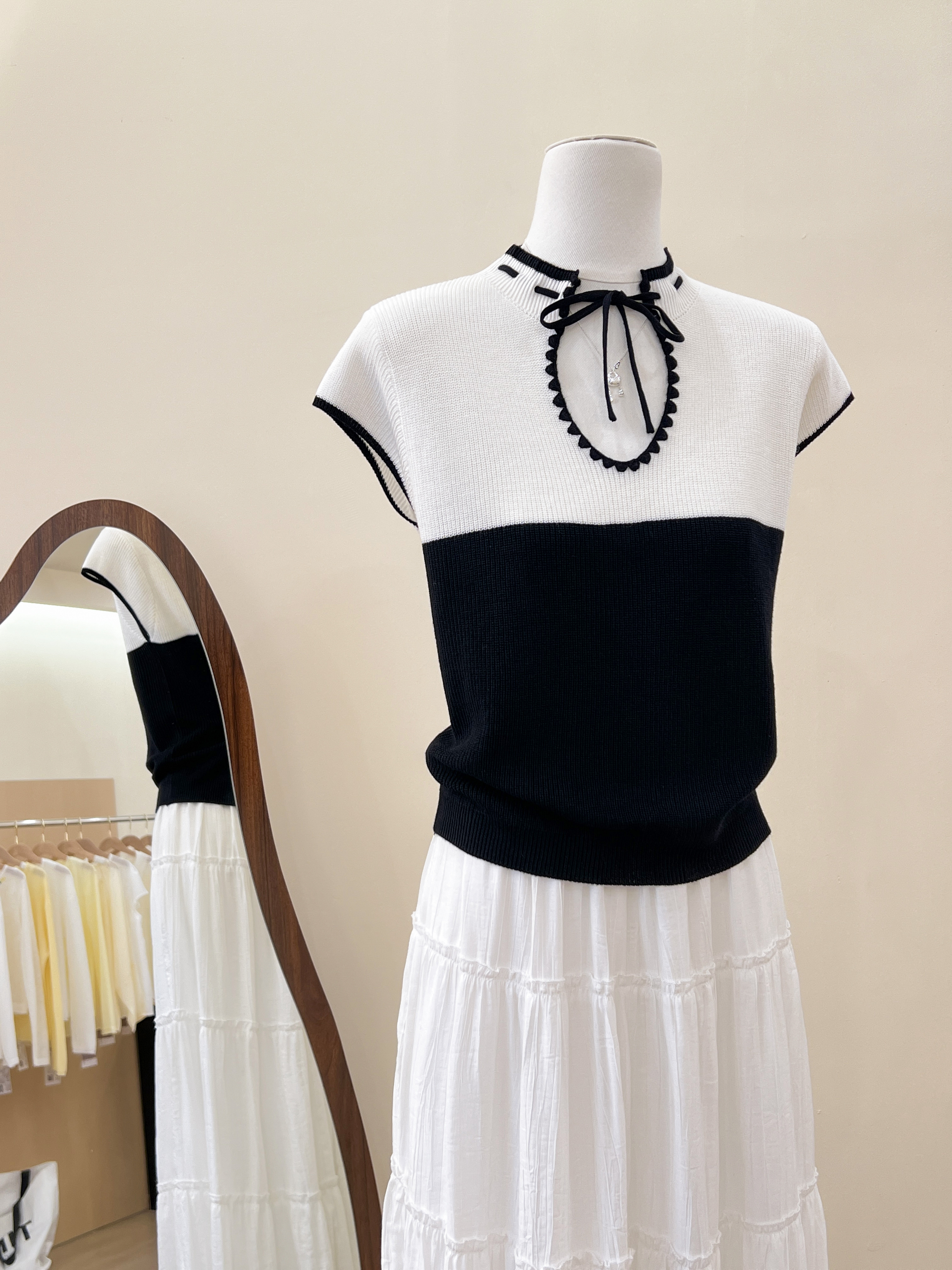 실사 니트 POLO 칼라 배색 구덩이 기사 반팔 티셔츠 여성 2026 여름 새로운 몸매 가꾸기 슬림해 보이는 품격 맨위