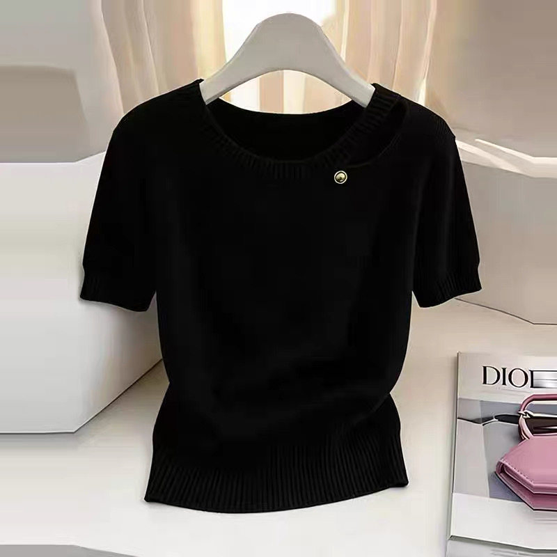 화이트 홀로우 아웃 얼음 실크 얇은 스타일 니트 반팔 티셔츠 여성 2026 새로운 여름 그레이트 봐. 의류