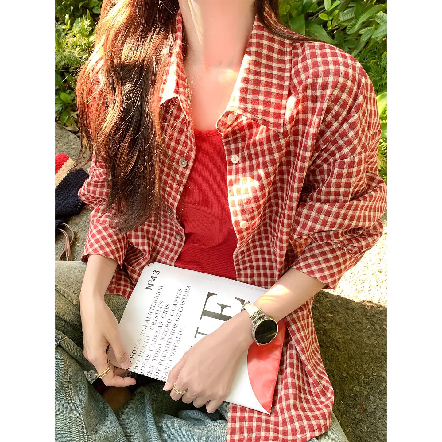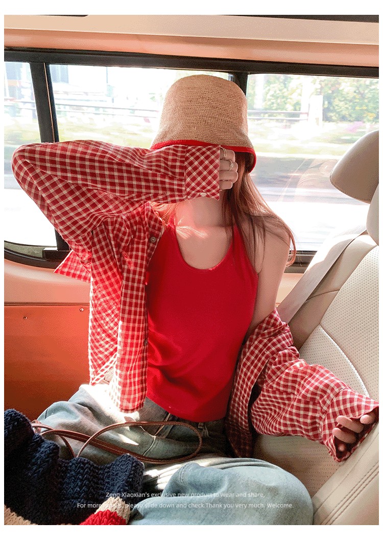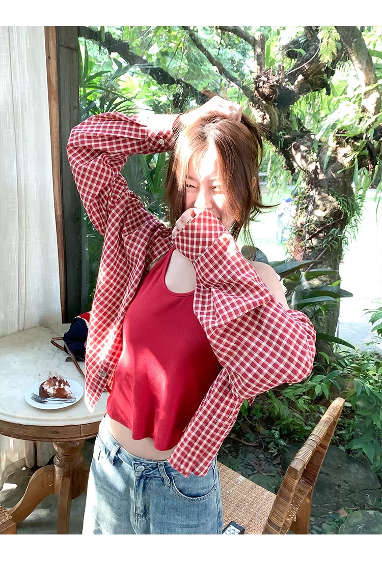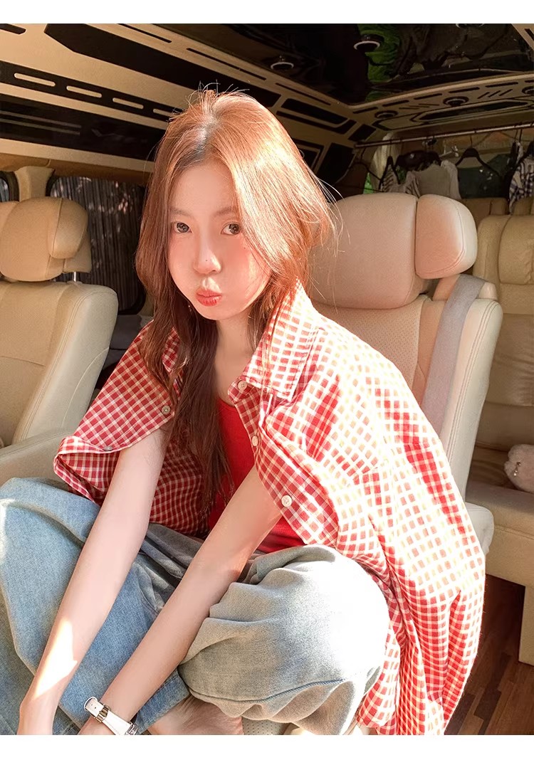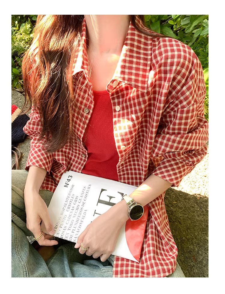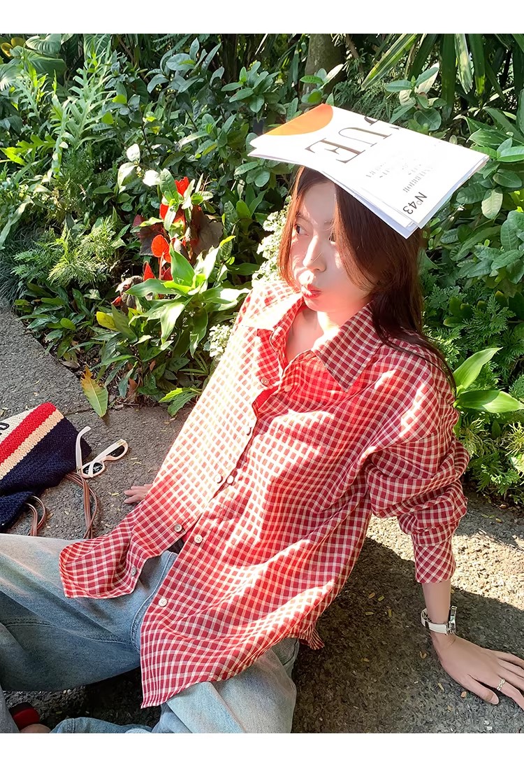 한 부서 빨간색 체크무늬 자외선 차단 셔츠 여성 코트 조기 봄 새로운 루즈핏 셔츠 오픈 가디건 맨위