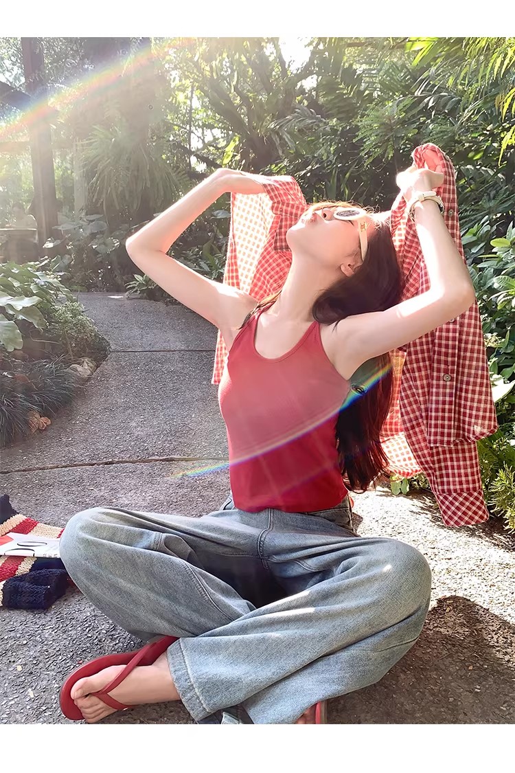 순수한 욕망 바람 행침 목 슬립 V넥 황색 조끼 여성 여름 핫걸 민소매 백리스 맨위