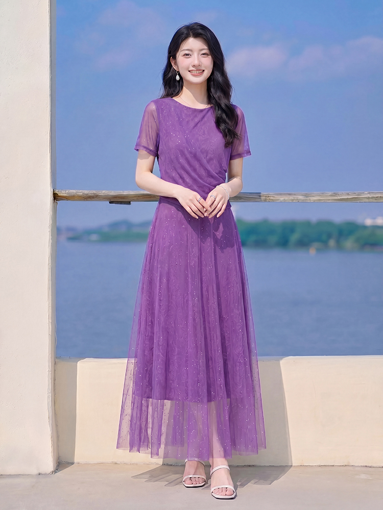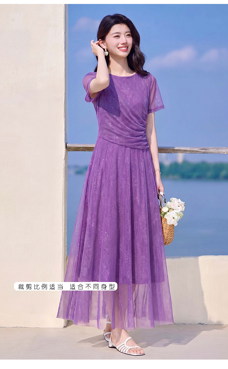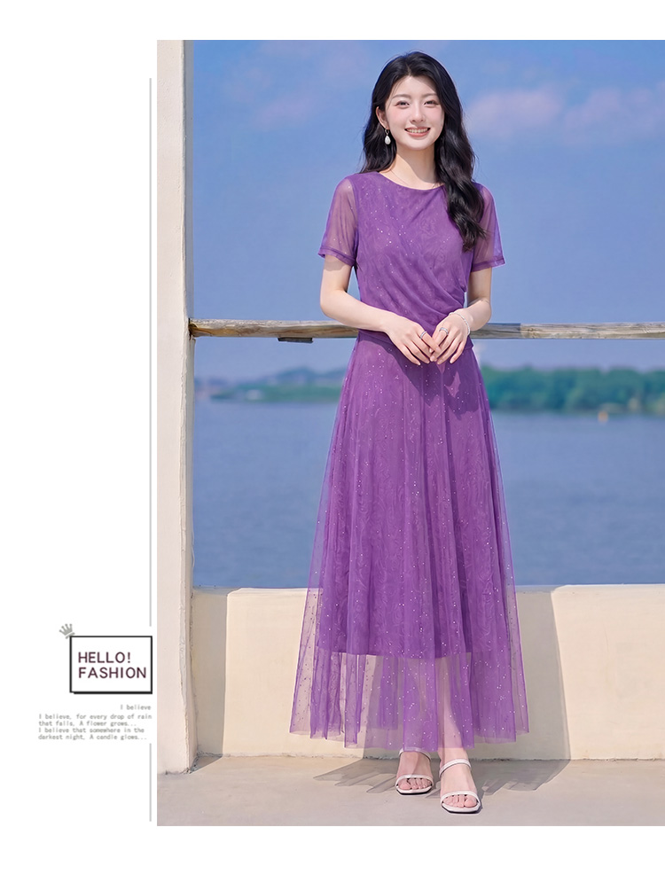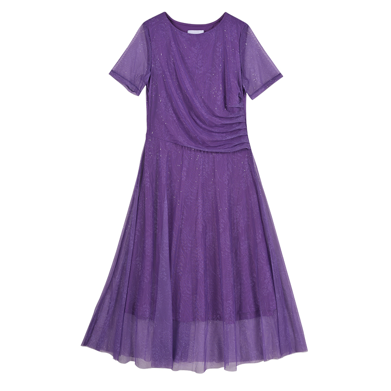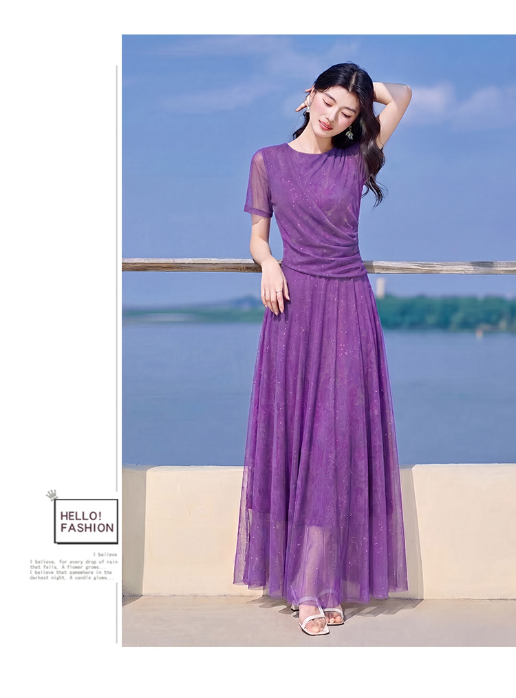 2026 새로운 프랑스식 우아함 보라색 여성 드레스 허리 수축 슬림해 보이는 품격 몸매 가꾸기 고급 센스 롱 스커트