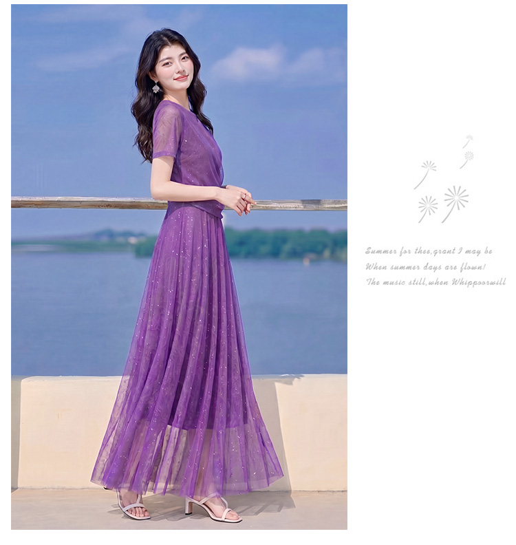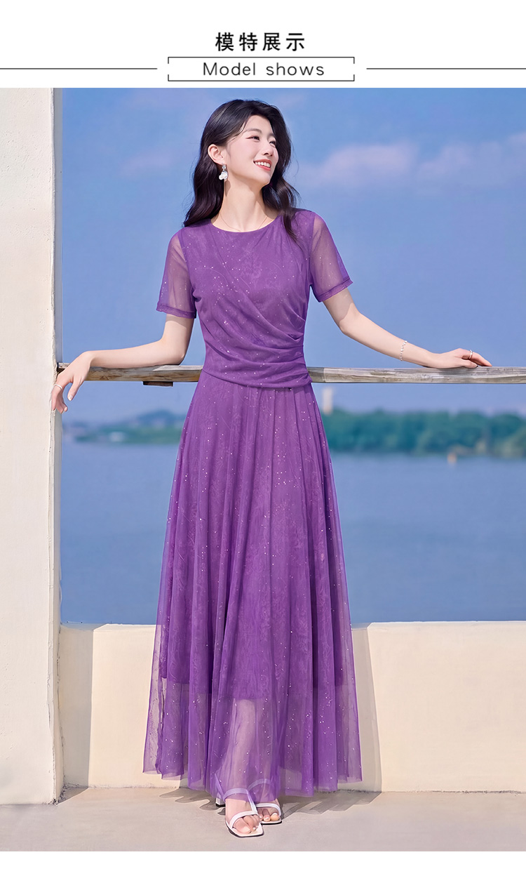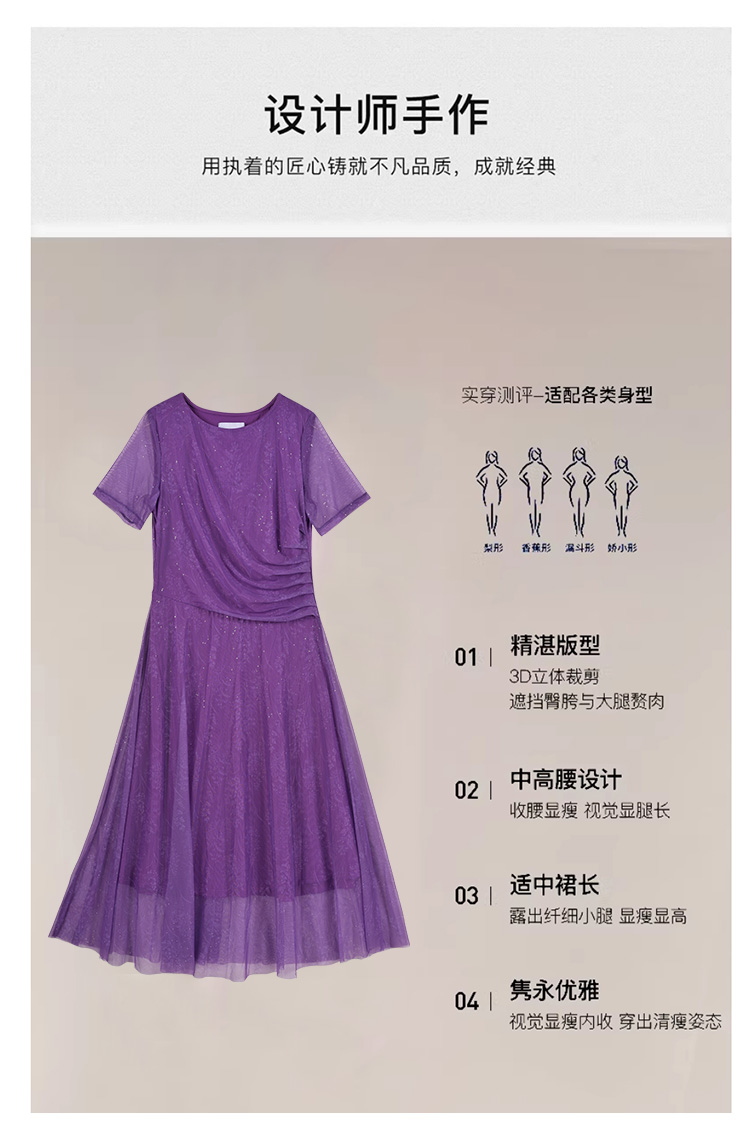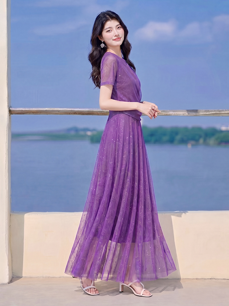 2026 새로운 프랑스식 우아함 보라색 여성 드레스 허리 수축 슬림해 보이는 품격 몸매 가꾸기 고급 센스 롱 스커트