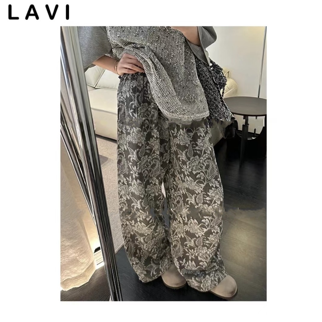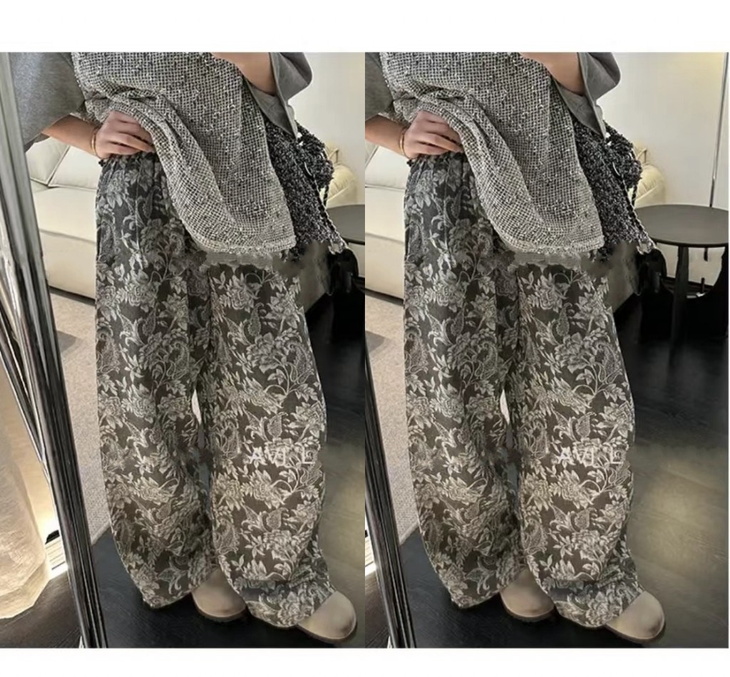 레트로 자카드 회색 캐주얼 바지 루즈핏 스트레이트 새로운 중식 국풍 디자인 센스 느긋한 외국 가스 와이드 레그 팬츠