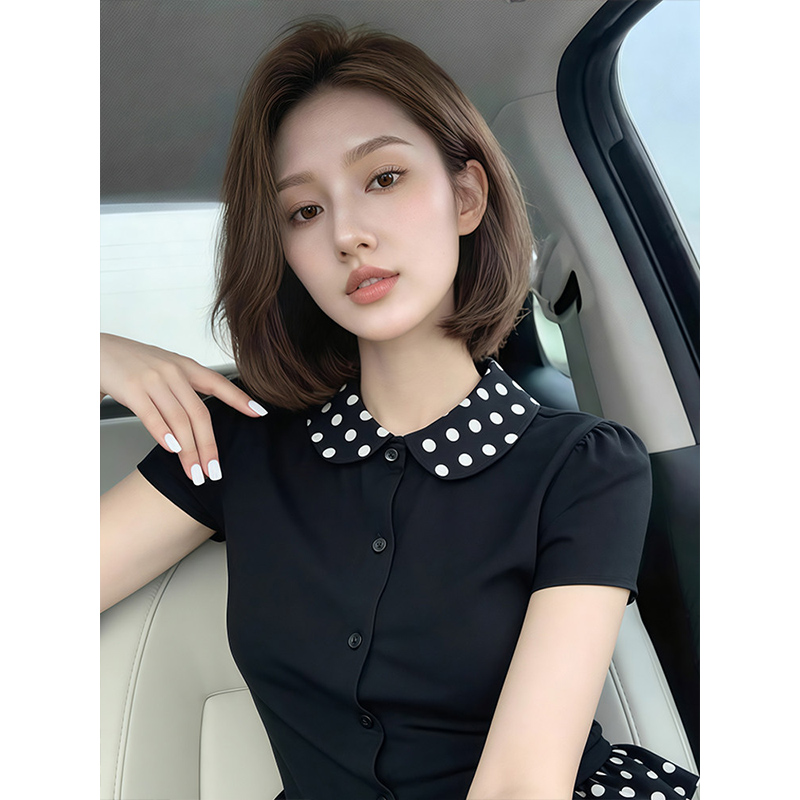 한국 대외 무역 구매 빅 사이즈 패치워크 폴로 칼라 몸매 가꾸기 티셔츠 여성 의류 2026 여름 새로운 맨위