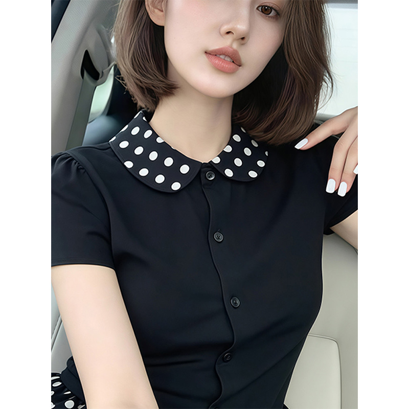 반팔 여성 셔츠 여름 중요 경우 작은 셔츠 프랑스식 맨위 핑크색 몸매 가꾸기 셔츠