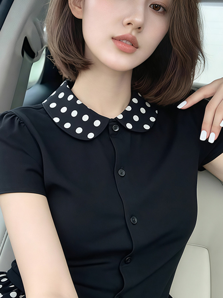 한국 대외 무역 구매 캐주얼 패션 빅 사이즈 패치워크 폴로 칼라 몸매 가꾸기 티셔츠 여성 의류 2026 새로운 여름 맨위