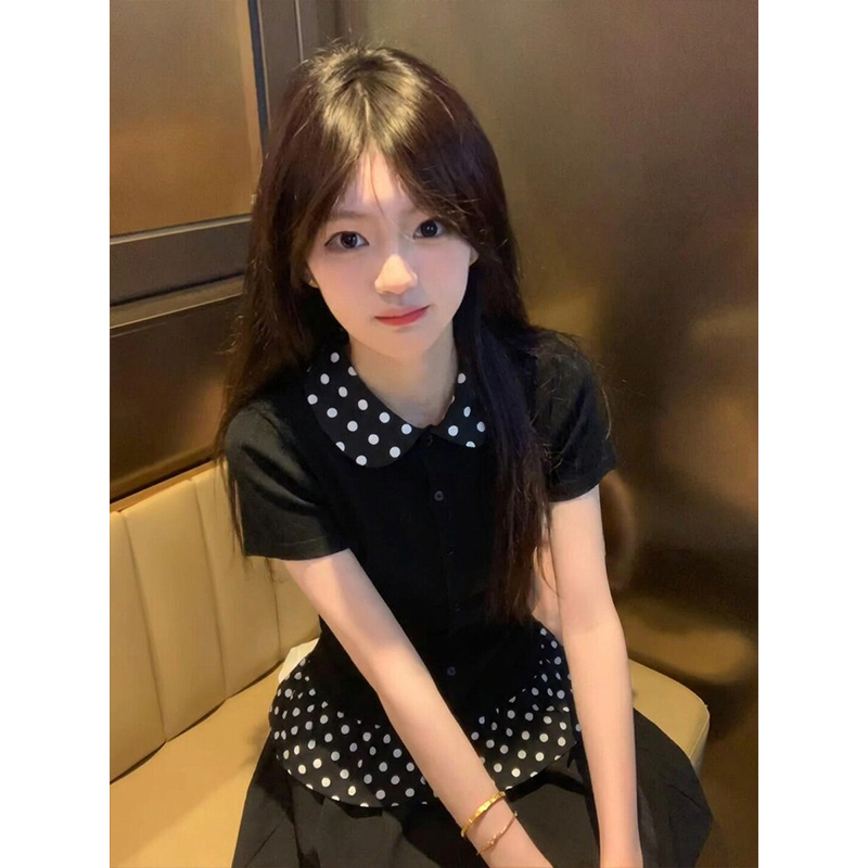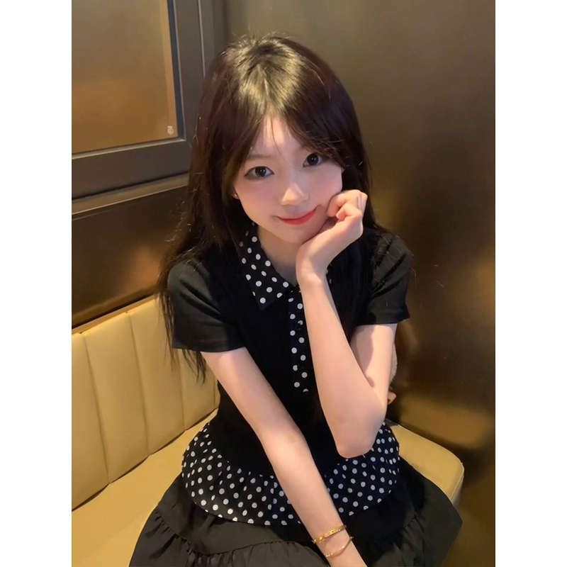 한국 대외 무역 구매 빅 사이즈 패치워크 폴로 칼라 몸매 가꾸기 티셔츠 여성 의류 2026 여름 새로운 맨위