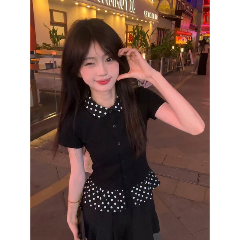 반팔 여성 셔츠 여름 중요 경우 작은 셔츠 프랑스식 맨위 핑크색 몸매 가꾸기 셔츠