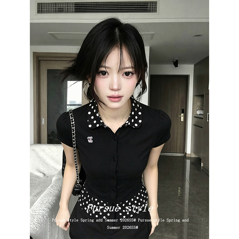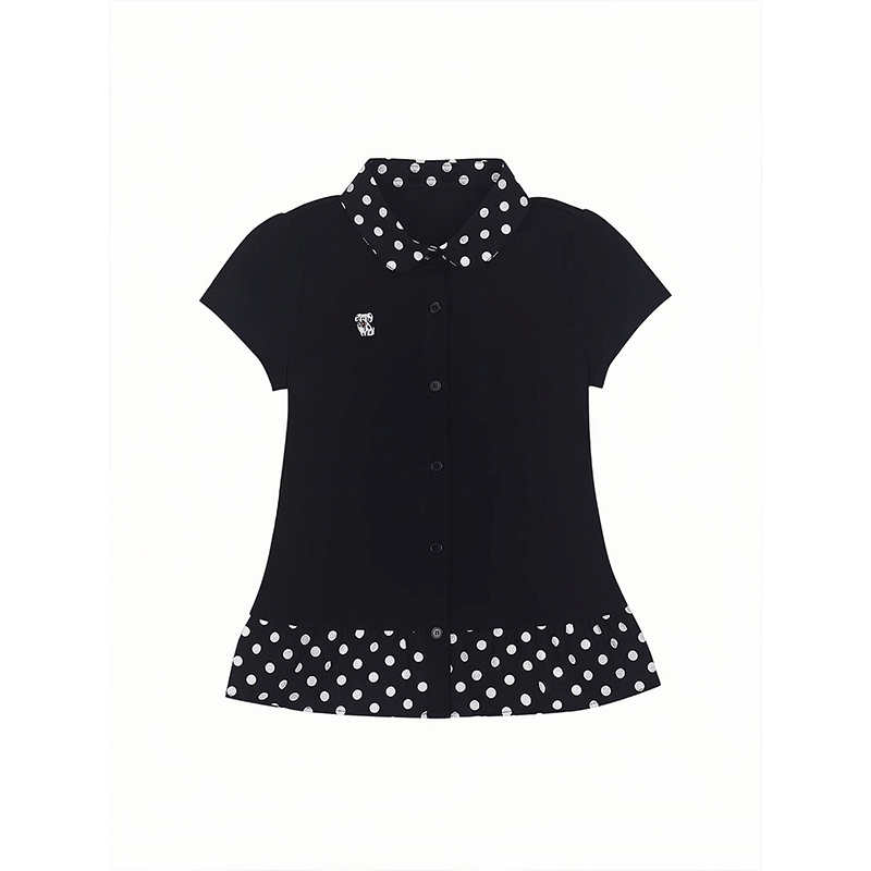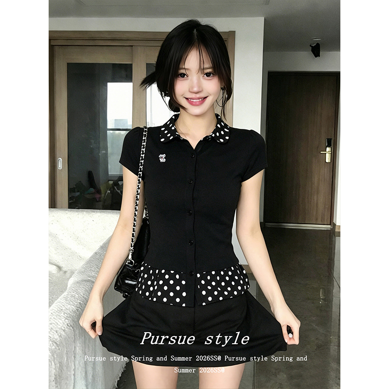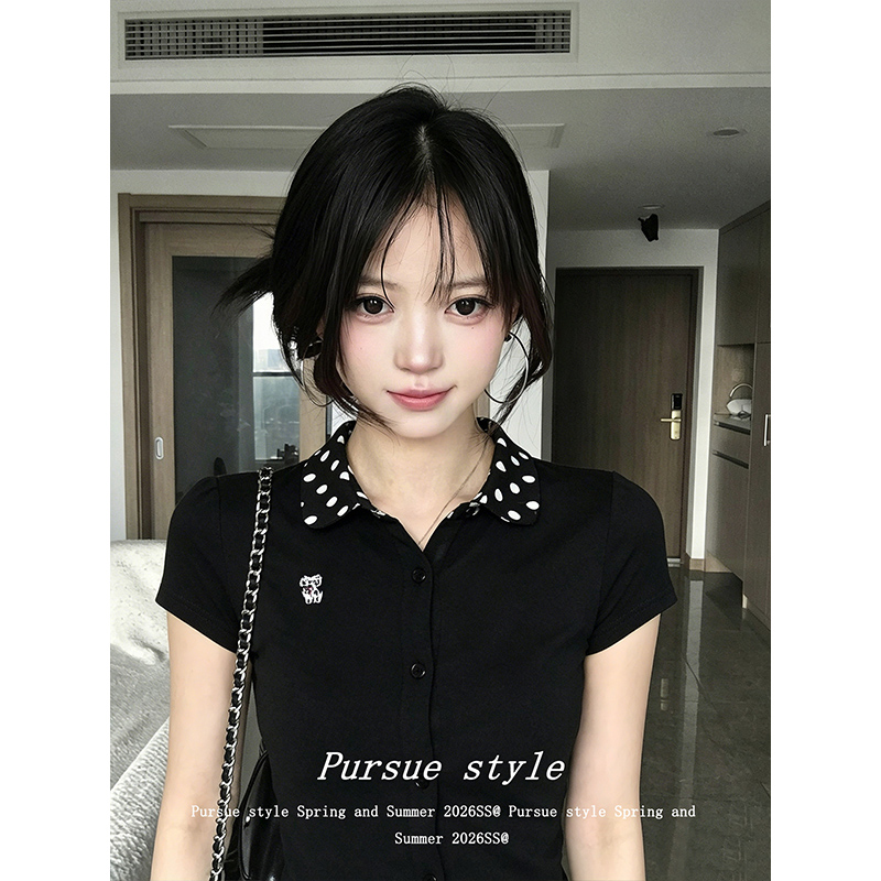 한국 대외 무역 주문 차가운 면 리브 1 1 빅 사이즈 패치워크 도트 무늬 폴로 칼라 몸매 가꾸기 티셔츠 여성 새로운 여름 맨위