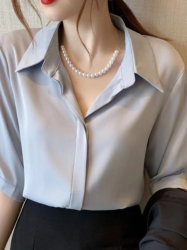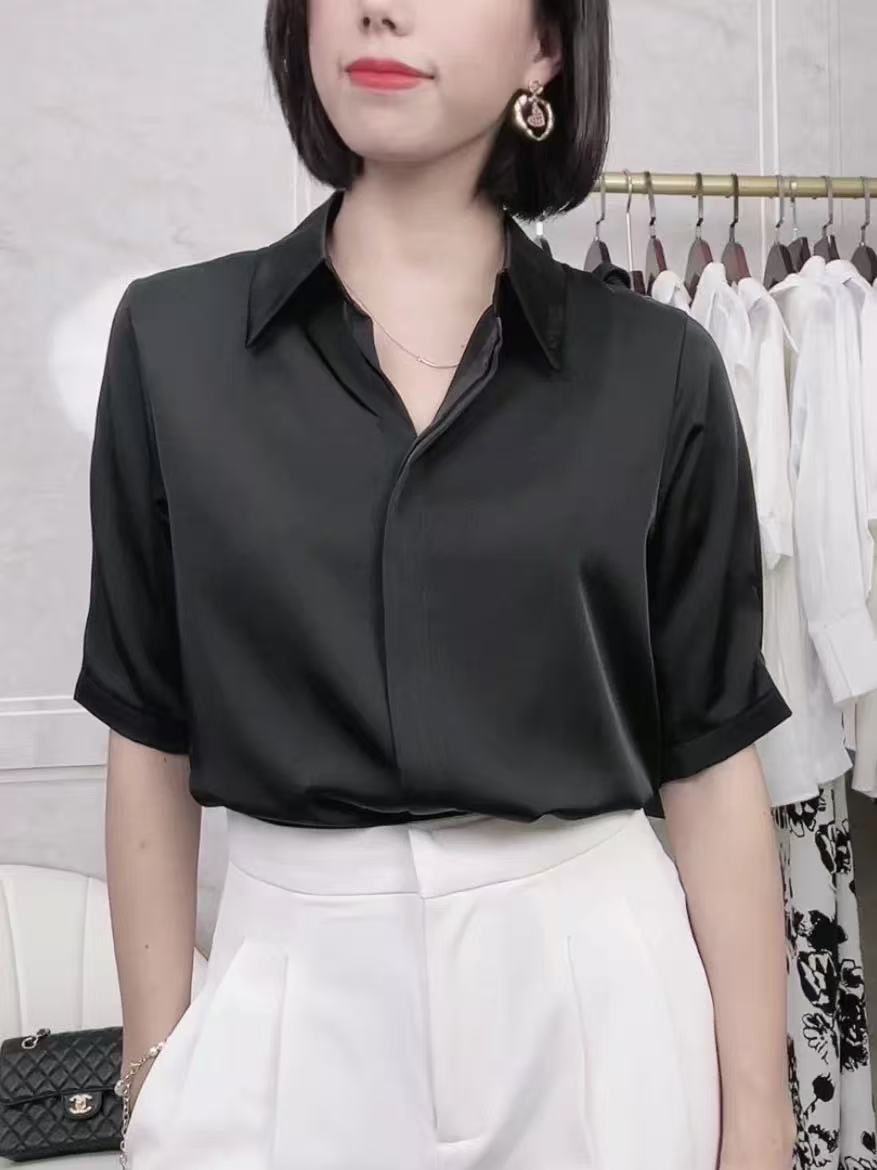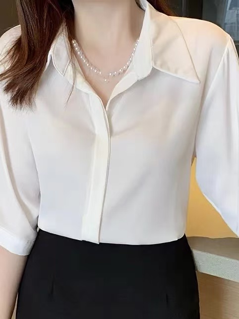 일본식 여성 의류 맨위 반팔 쉬폰 블라우스 프로 피부 셔츠 통기성 캐주얼 셔츠