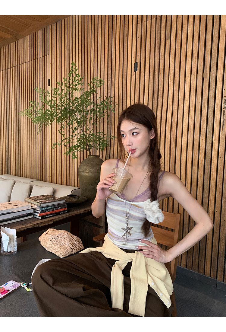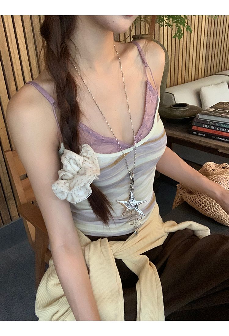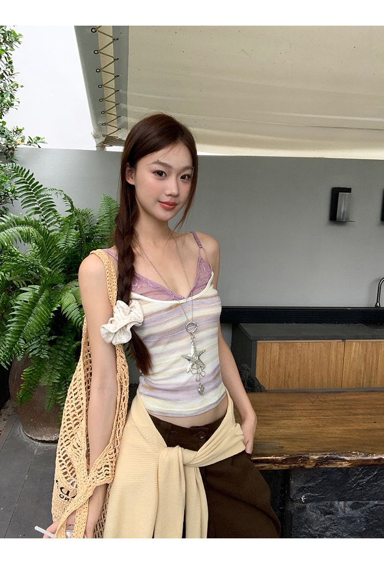 원본 것 캐미솔 여름 외출용 백리스 핫걸 레이스 보라색 스트라이프 민소매 맨위 여성