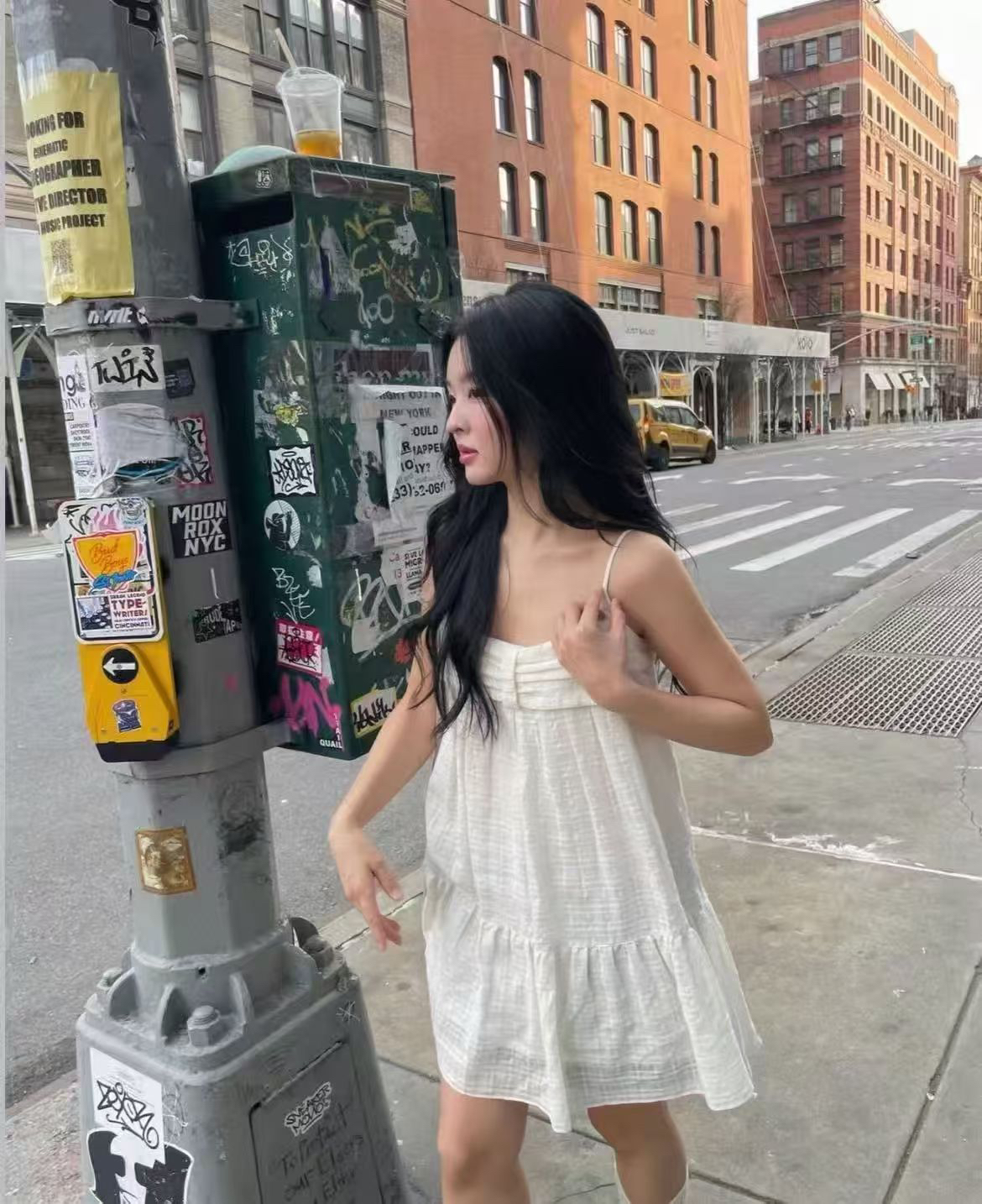 있음 선적 한국 ins 레이스 조각 불규칙 슬립 드레스