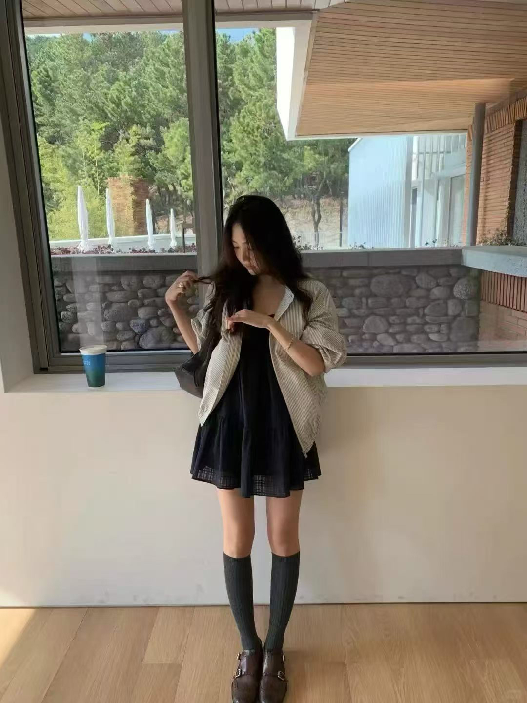 있음 선적 한국 ins 휴가 바람 자카드 슬립 드레스