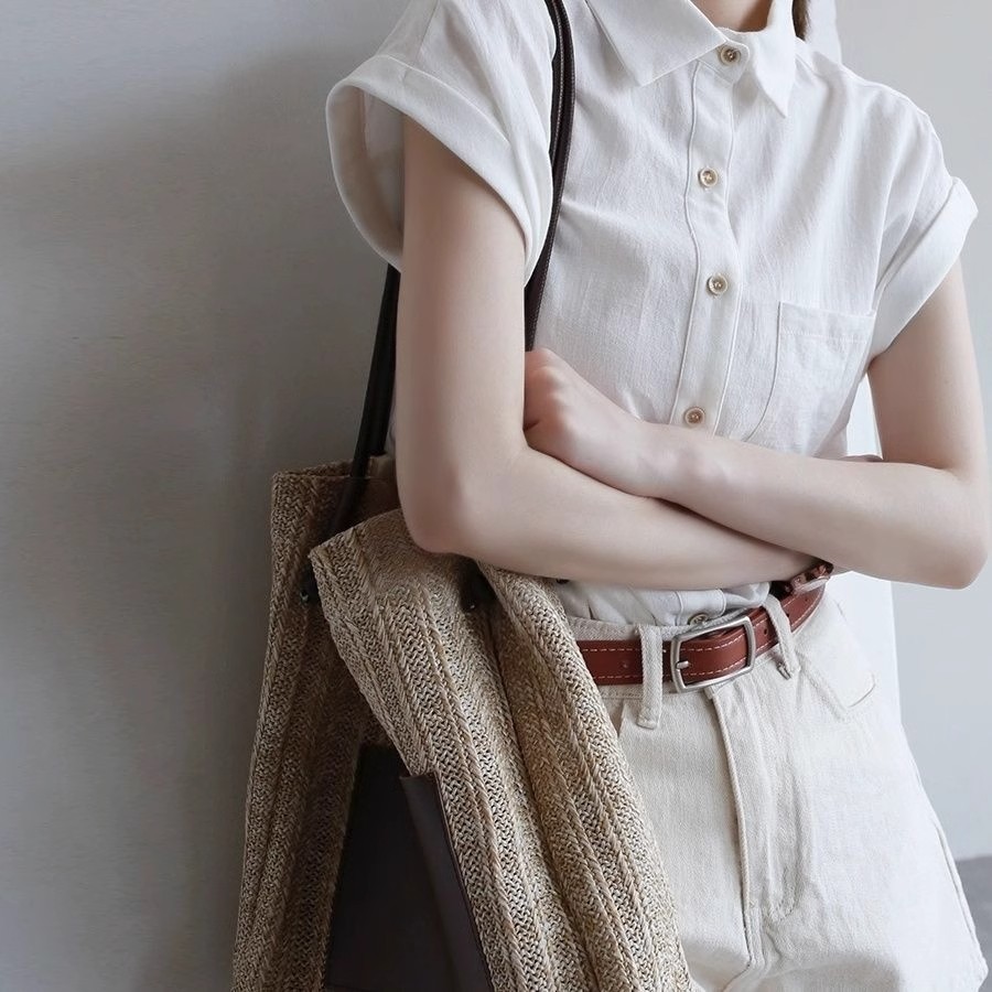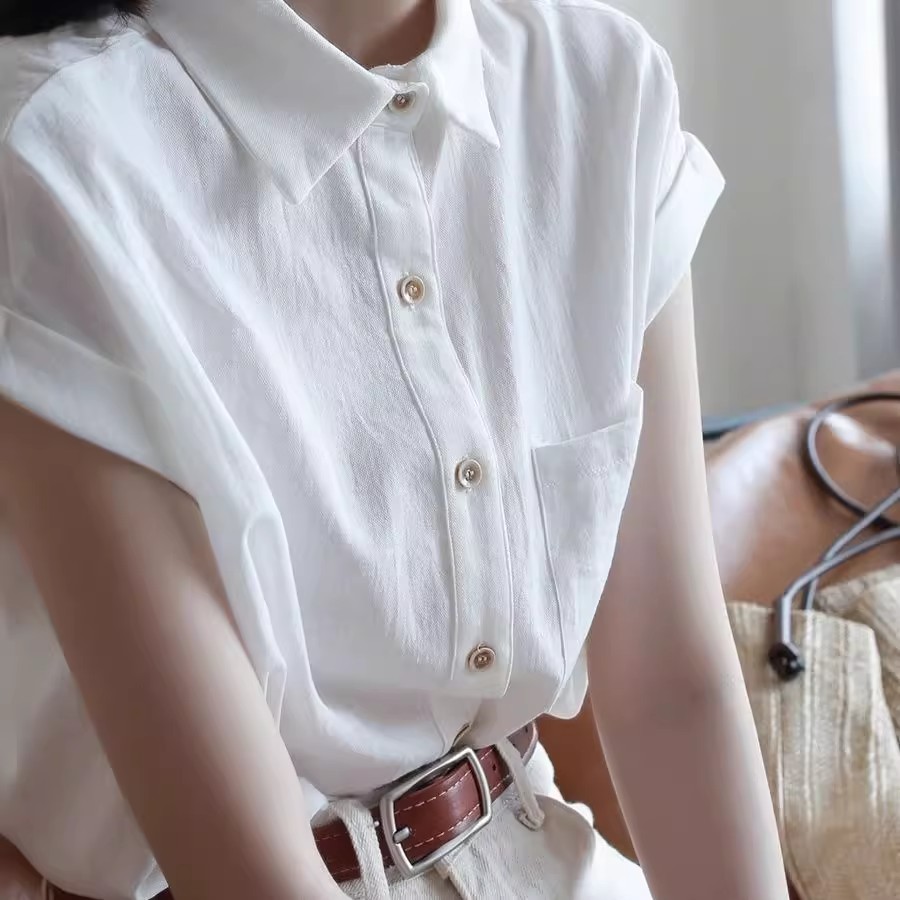 미니멀리즘 암소 귀 소매 디자인 센스 여름 새로운 반팔 통기성 편안함 화이트 셔츠 여성 셔츠