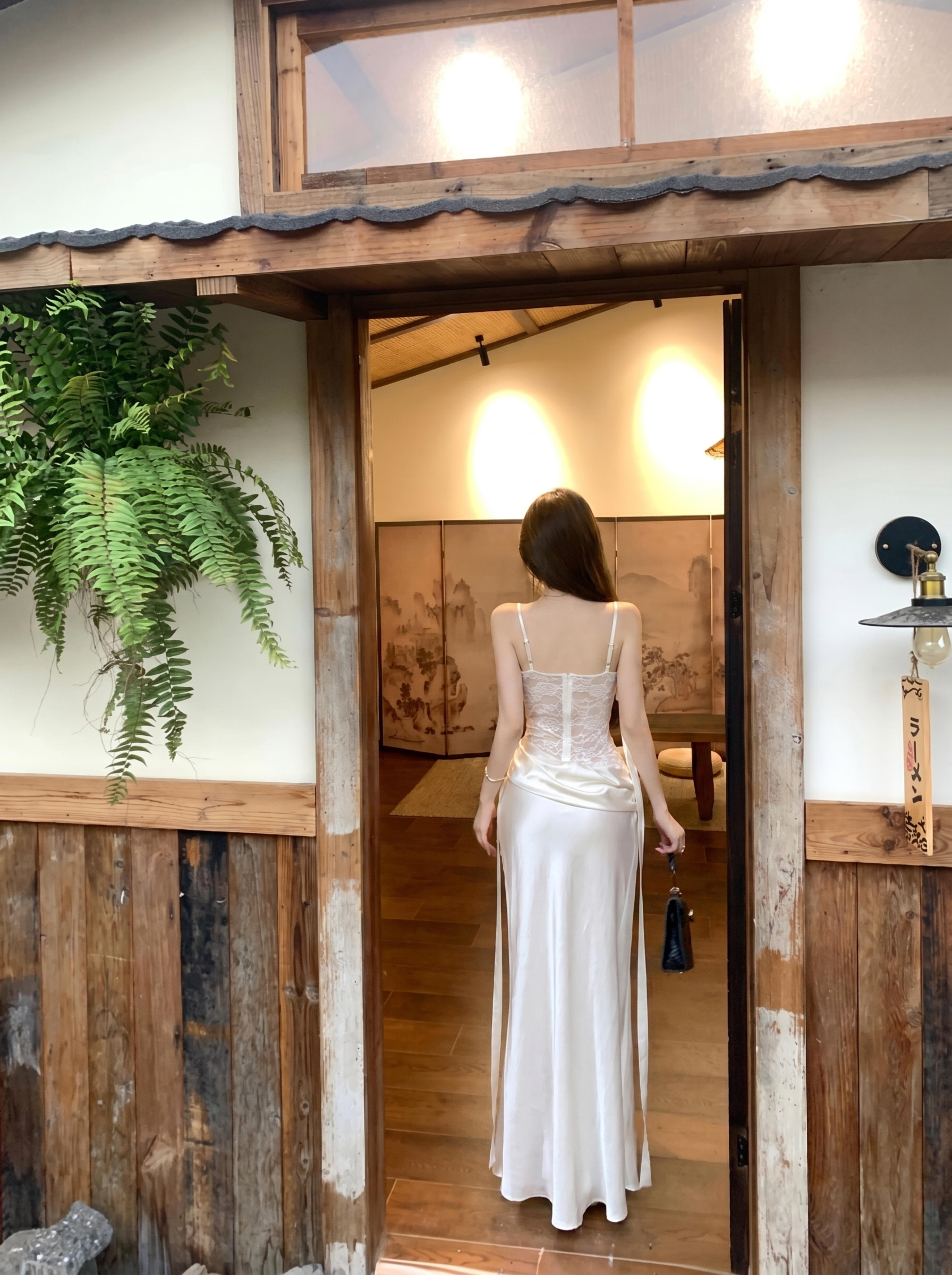 실사 품격 흔들다 칼라 레이스 조각 슬립 드레스 2026 펌프 Pleat 디자인 센스 작은 대중 슬림해 보이는 새틴 요정 롱 스커트